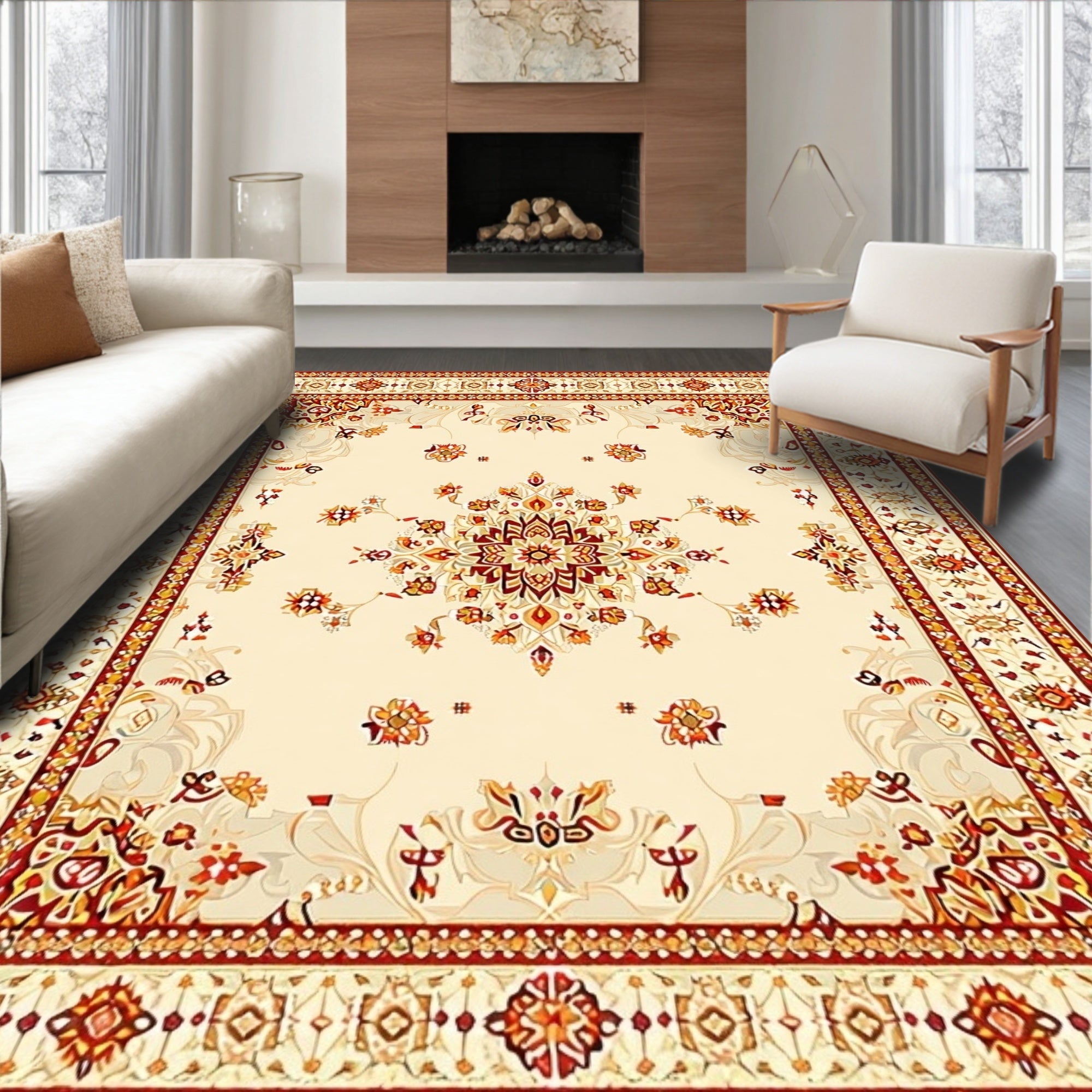 Ultra Soft Area Rug, Non Slip, Stain Resistant, Washable Area Rugs for Living Room, Bedroom, Boho Chic Medallion Area With Traditional Artisanal Elements(Beige) Overview: