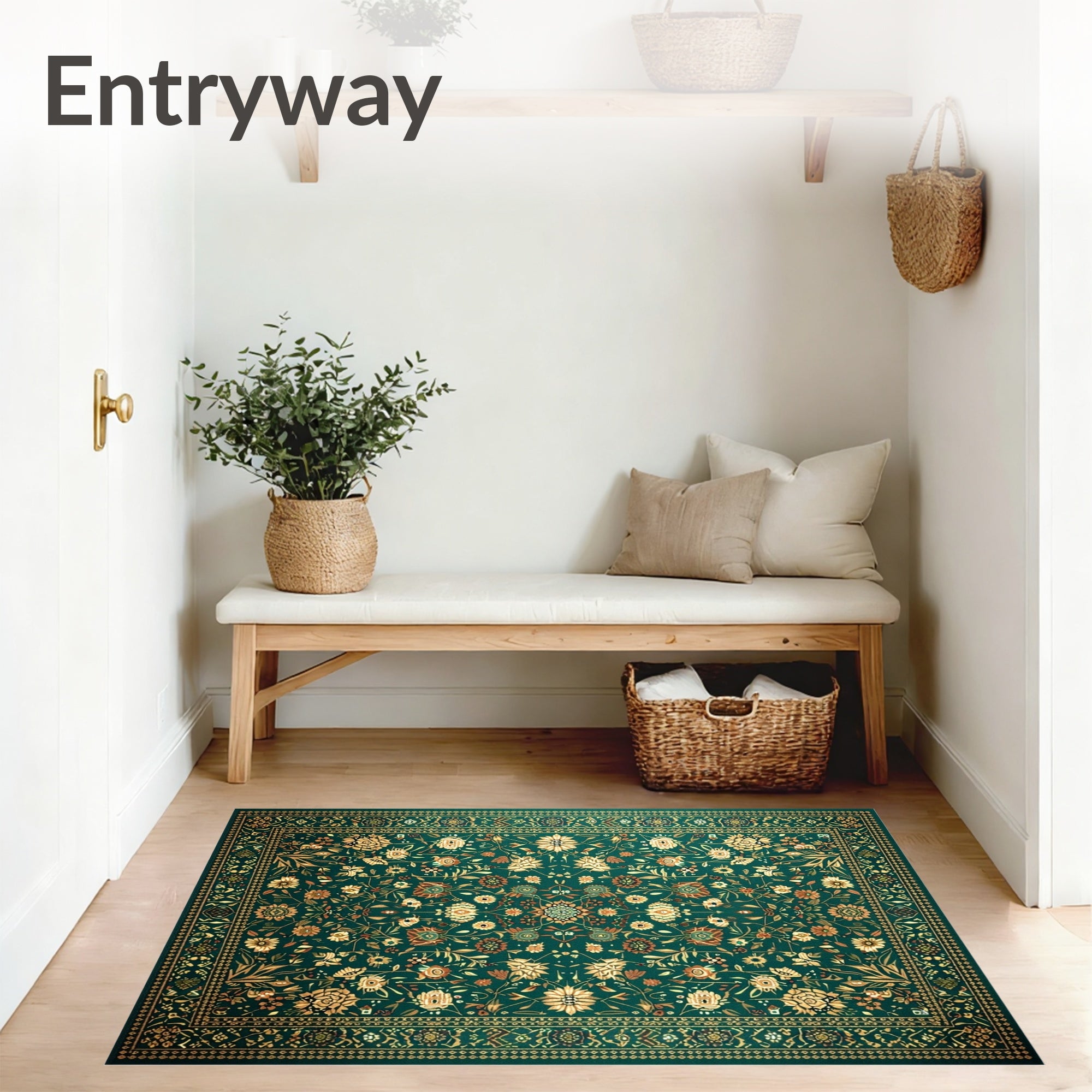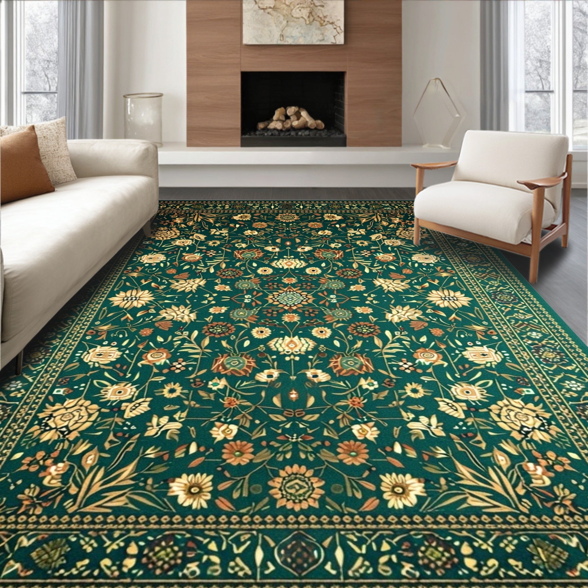 Ultra Soft Area Rug, Non Slip, Stain Resistant, Washable Area Rugs for Living Room, Bedroom, Boho Chic Retro(Green) Overview: