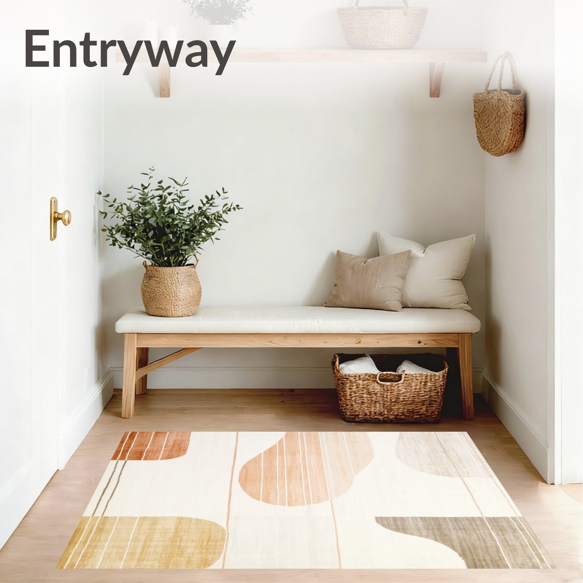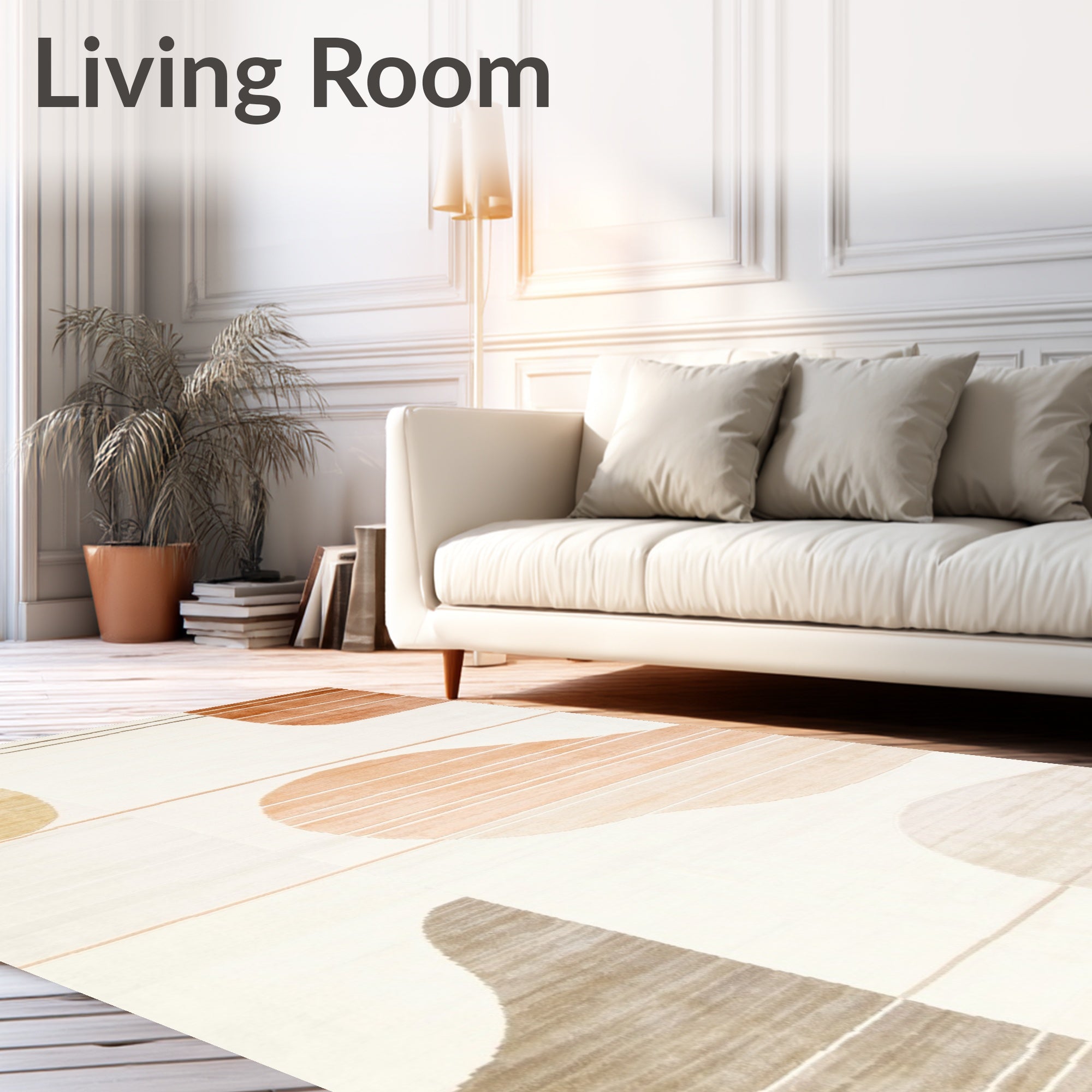 Ultra Soft Area Rug, Non Slip, Stain Resistant, Washable Area Rugs for Living Room, Bedroom, Boho Chic with Geometric Lines and Earthy Gradients(Beige) Overview: