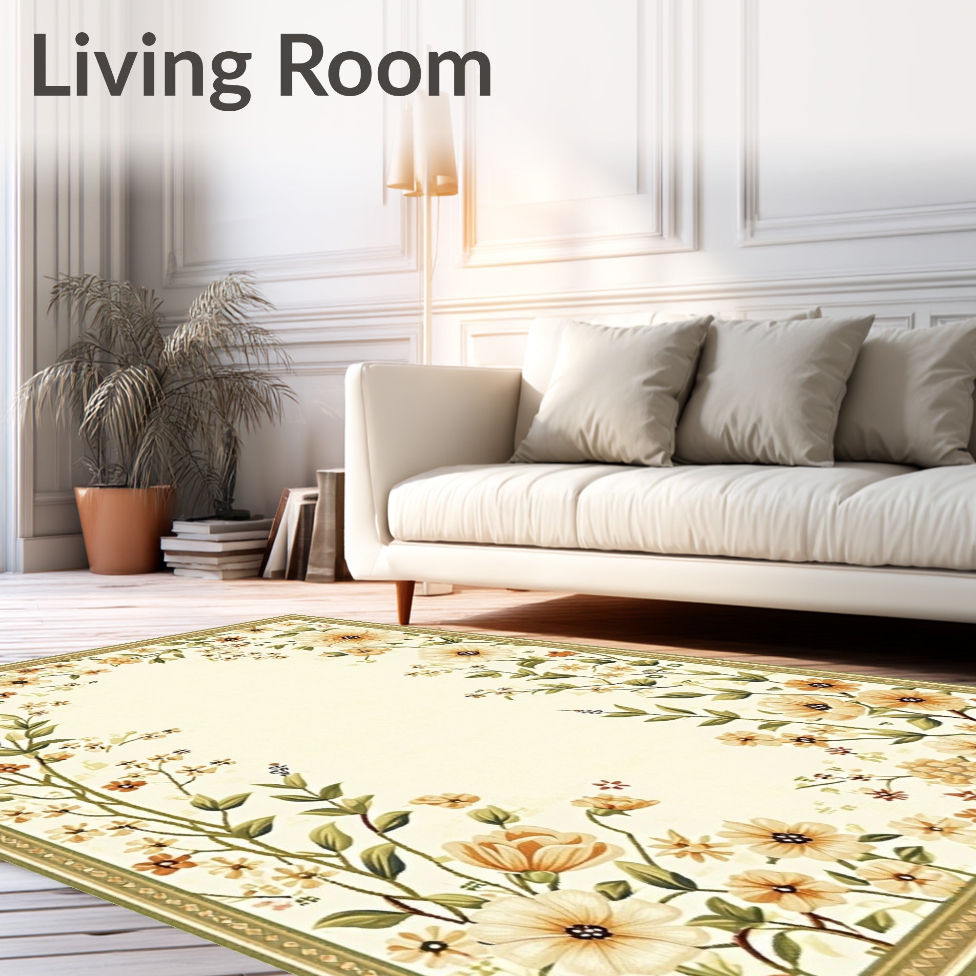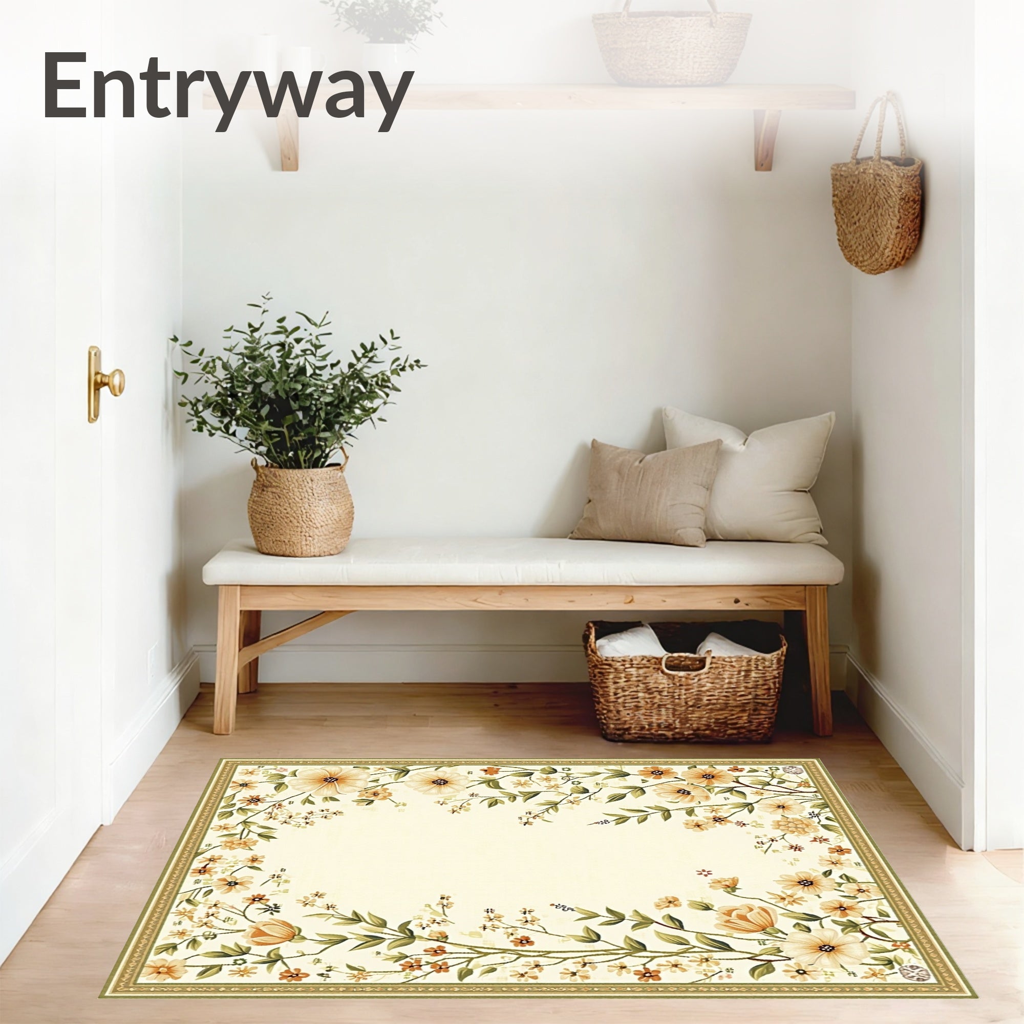 Ultra Soft Area Rug, Non Slip, Stain Resistant, Washable Area Rugs for Living Room, Bedroom, Boho Floral Entrance Runner Non Slip Indoor Hallway(Beige) Overview: