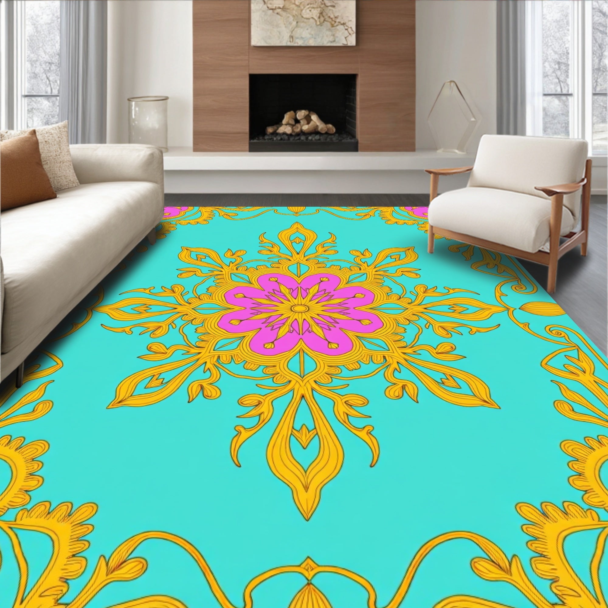 Ultra Soft Area Rug, Non Slip, Stain Resistant, Washable Area Rugs for Living Room, Bedroom, Boho Floral Featuring Ornate Filigree(Pink) Overview: