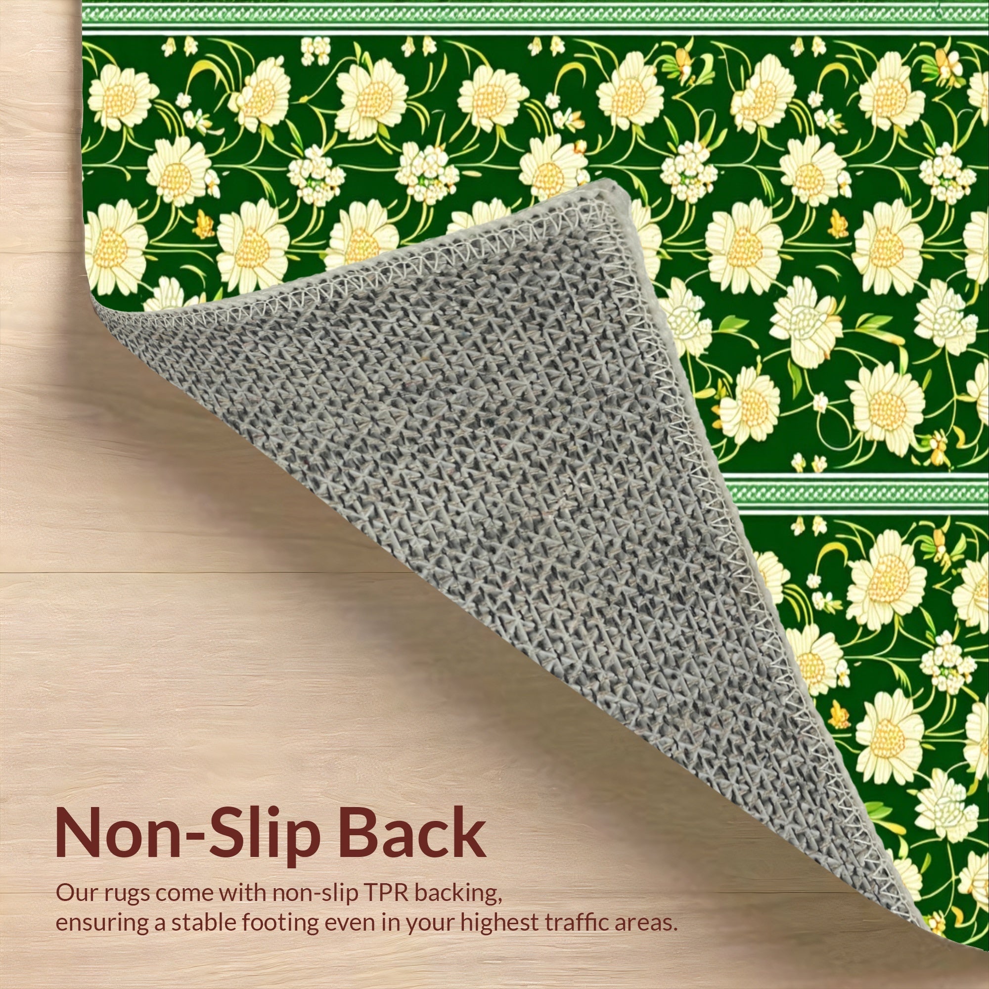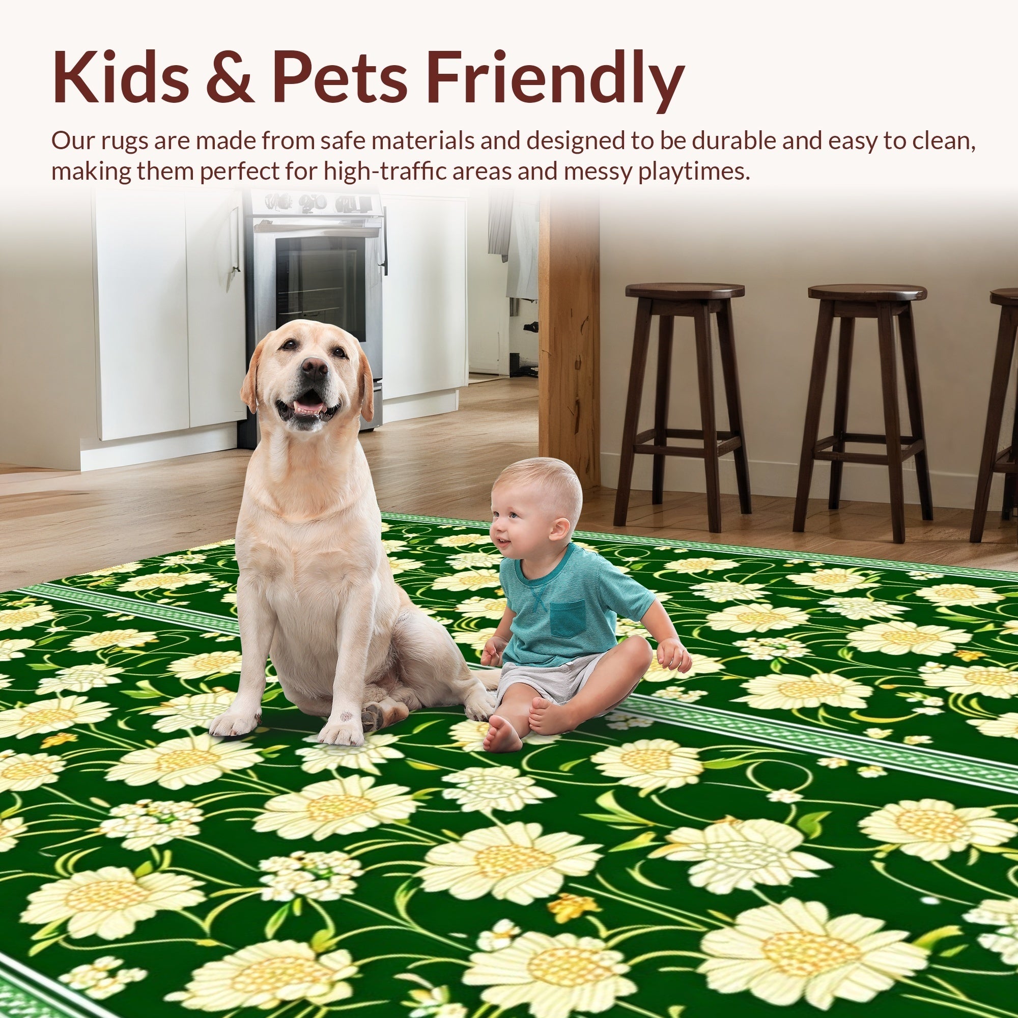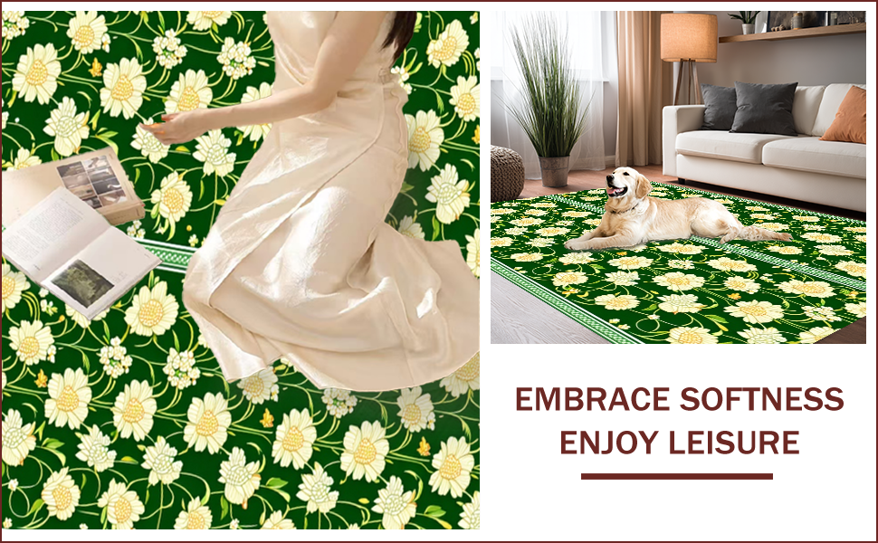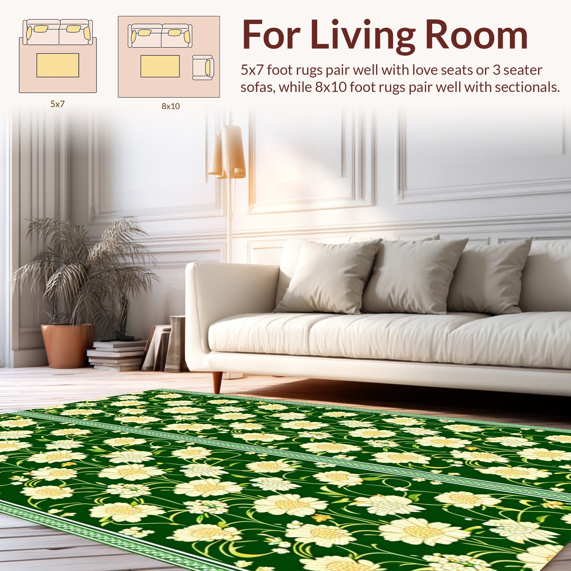 Ultra Soft Area Rug, Non Slip, Stain Resistant, Washable Area Rugs for Living Room, Bedroom, Boho Floral Low-Pile(Green) Overview: