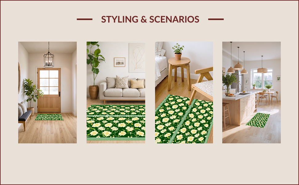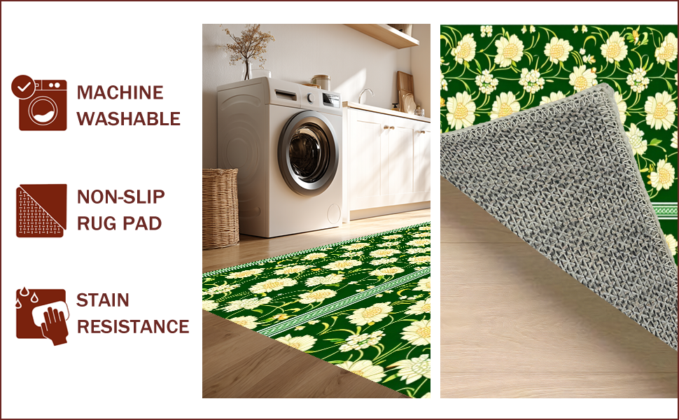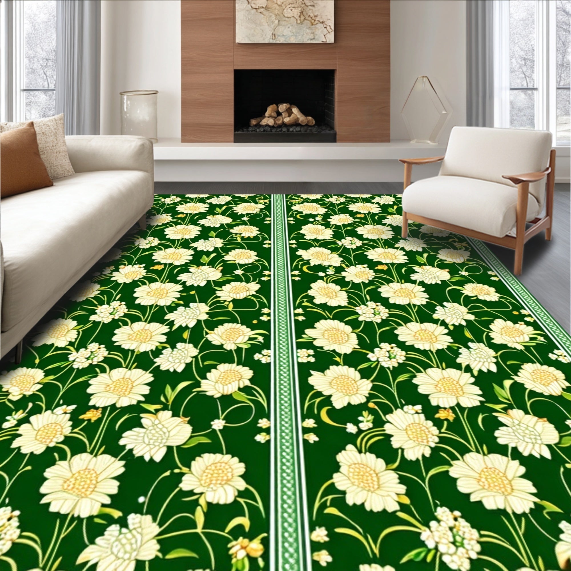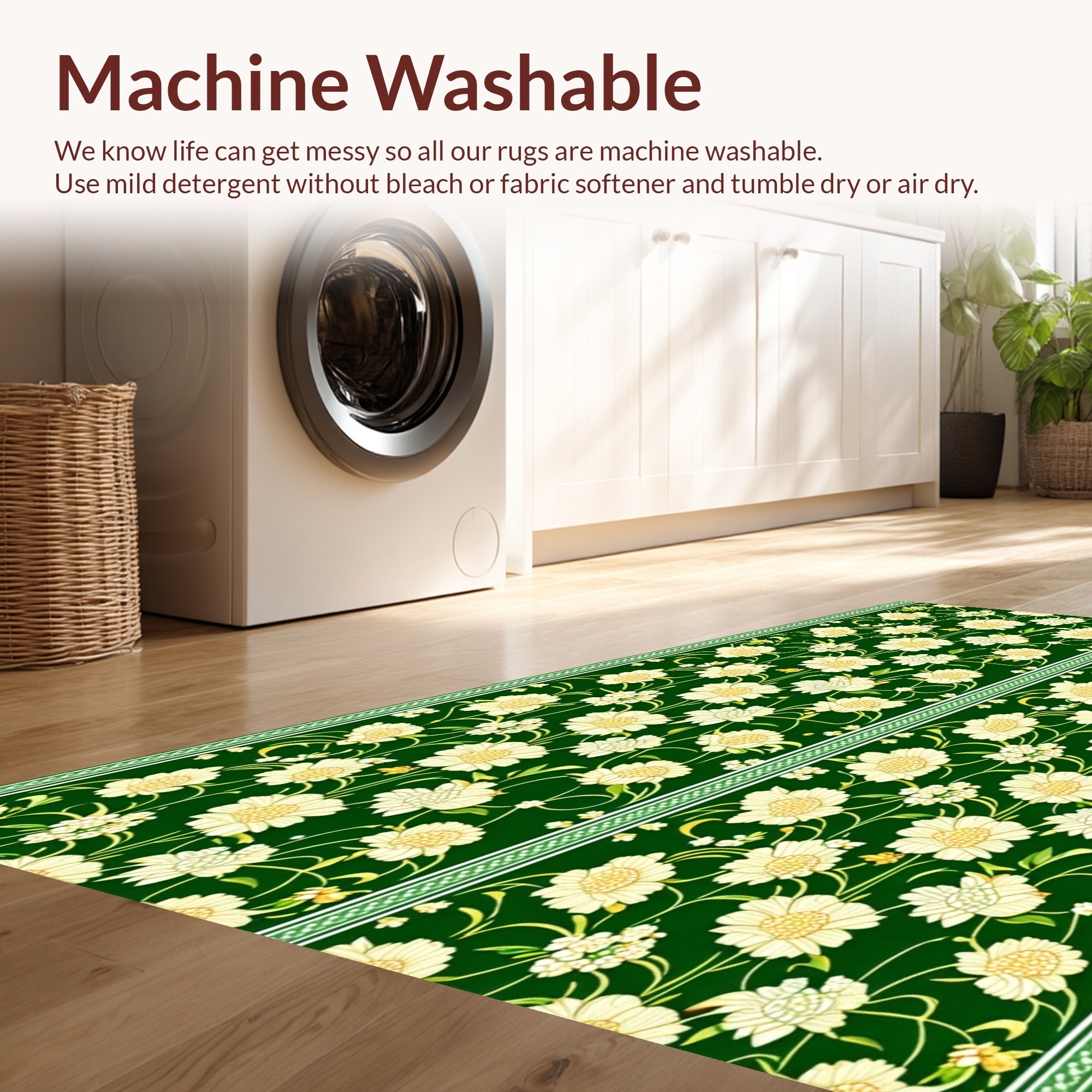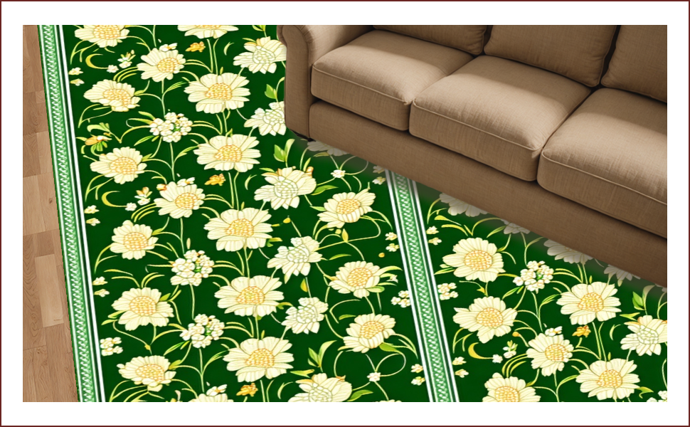 Ultra Soft Area Rug, Non Slip, Stain Resistant, Washable Area Rugs for Living Room, Bedroom, Boho Floral Low-Pile(Green) Overview: