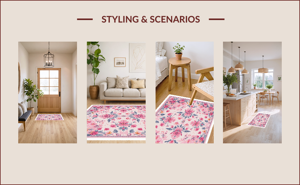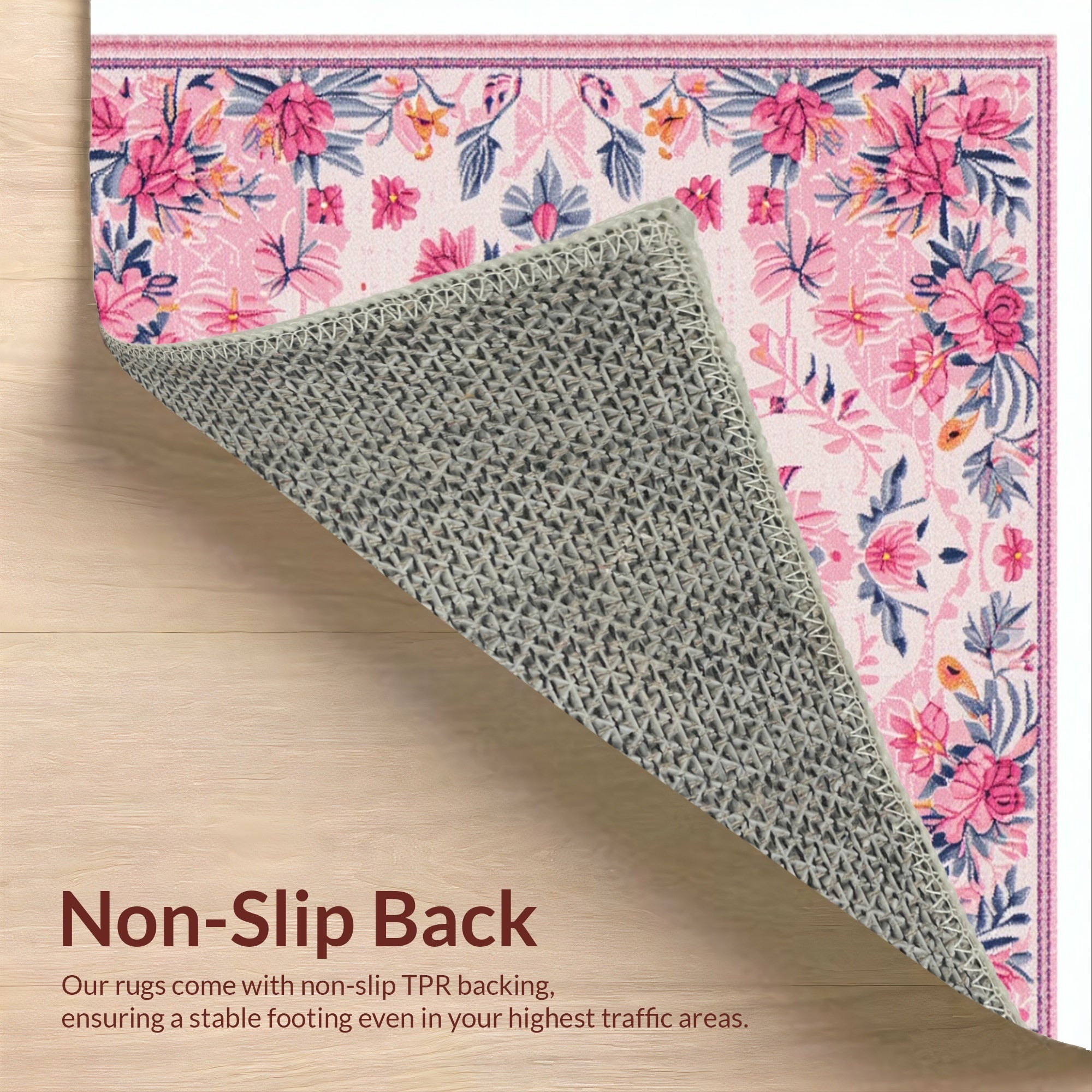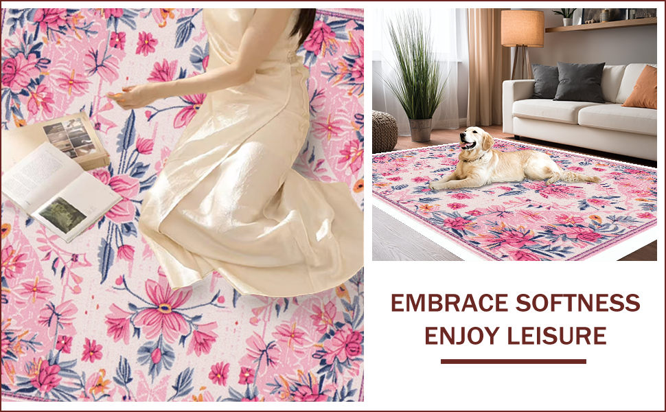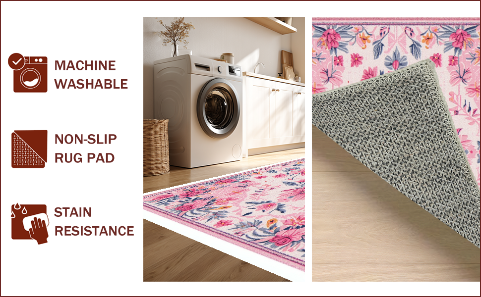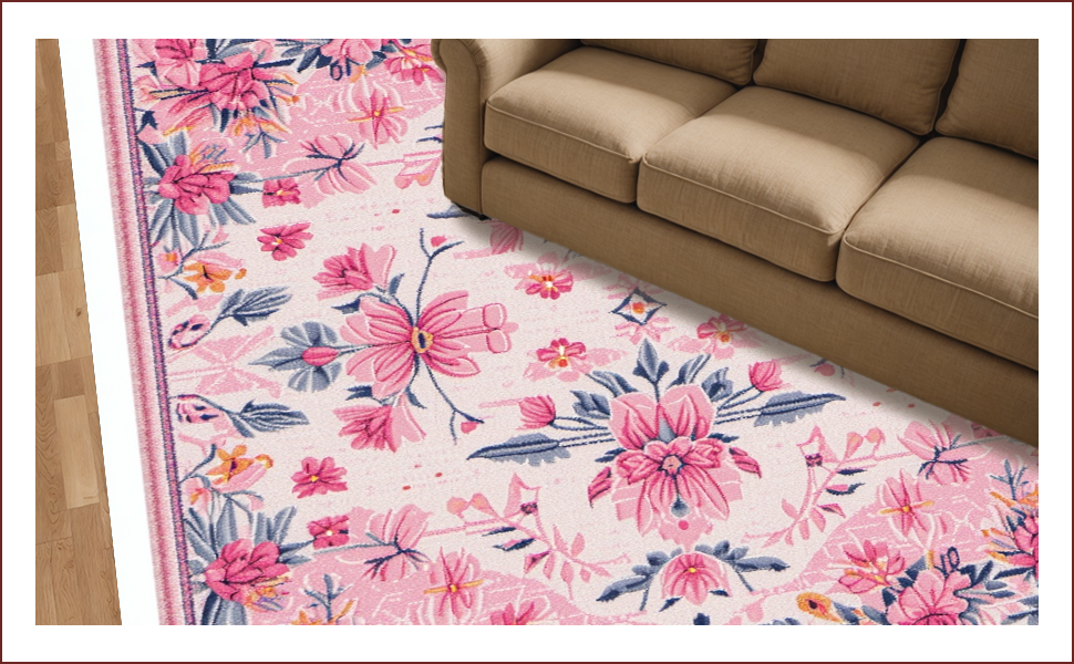 Ultra Soft Area Rug, Non Slip, Stain Resistant, Washable Area Rugs for Living Room, Bedroom, Boho Floral Non-Slip Kids Room(Pink) Overview:
