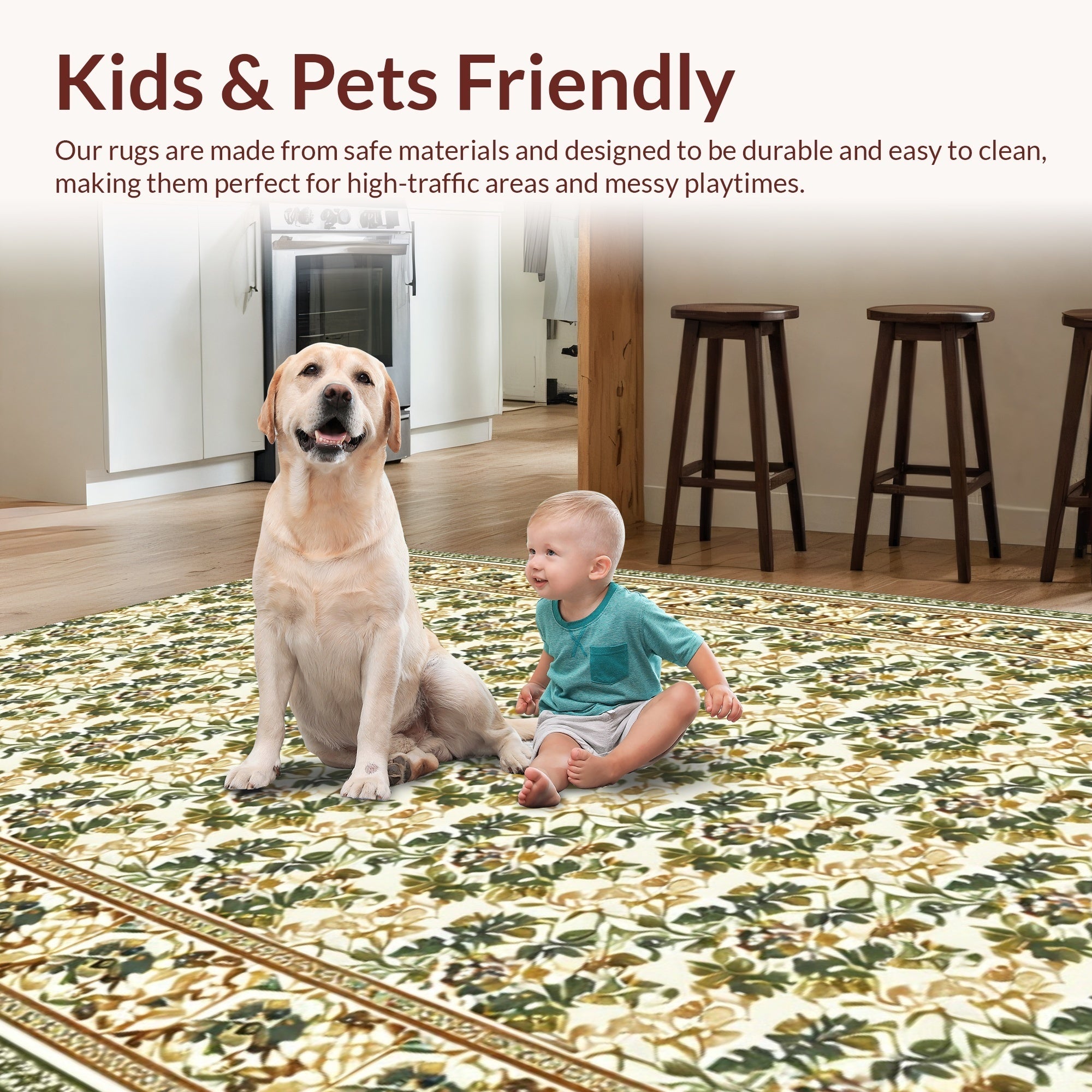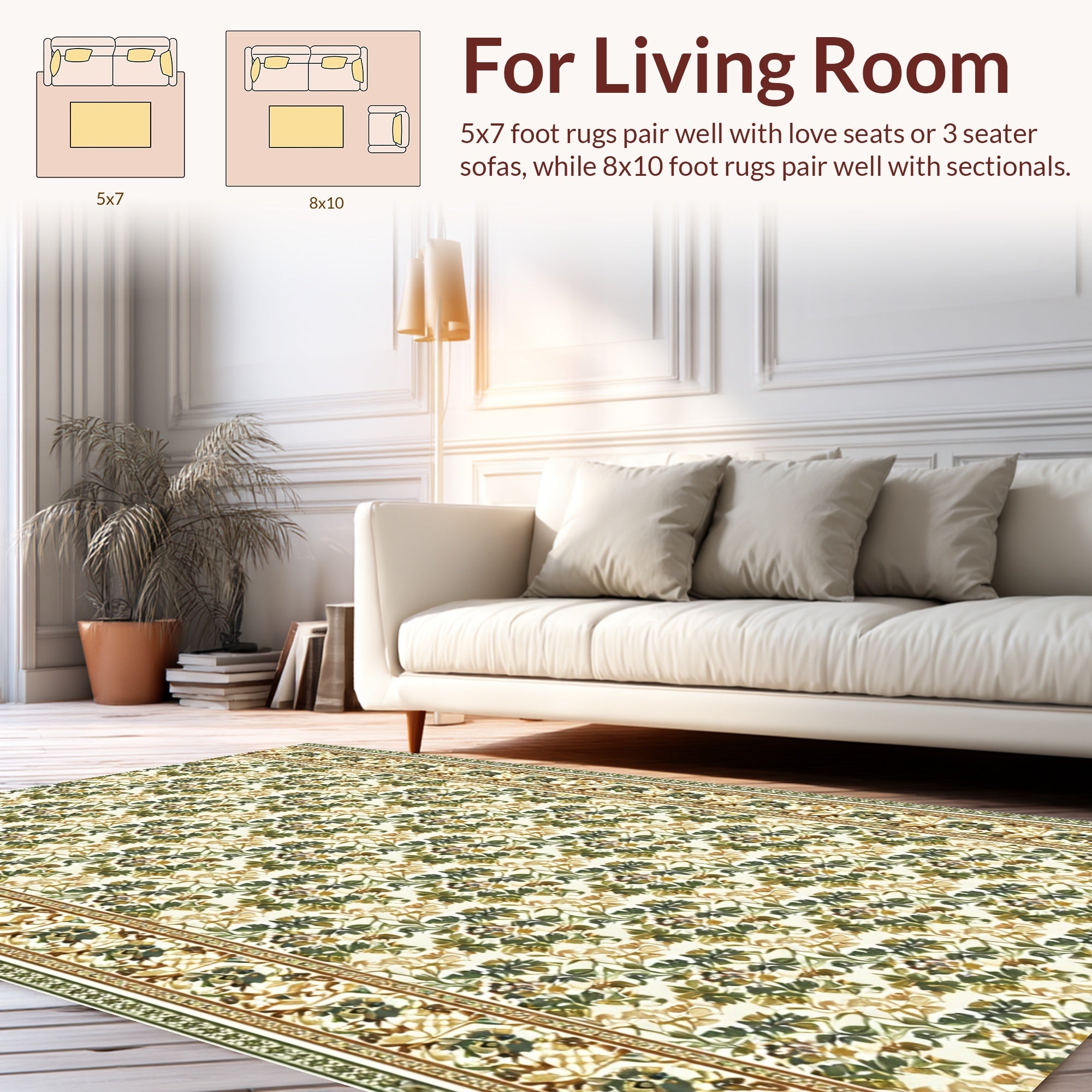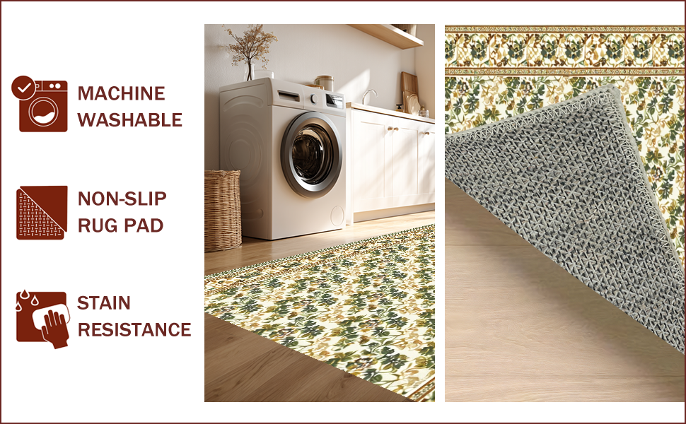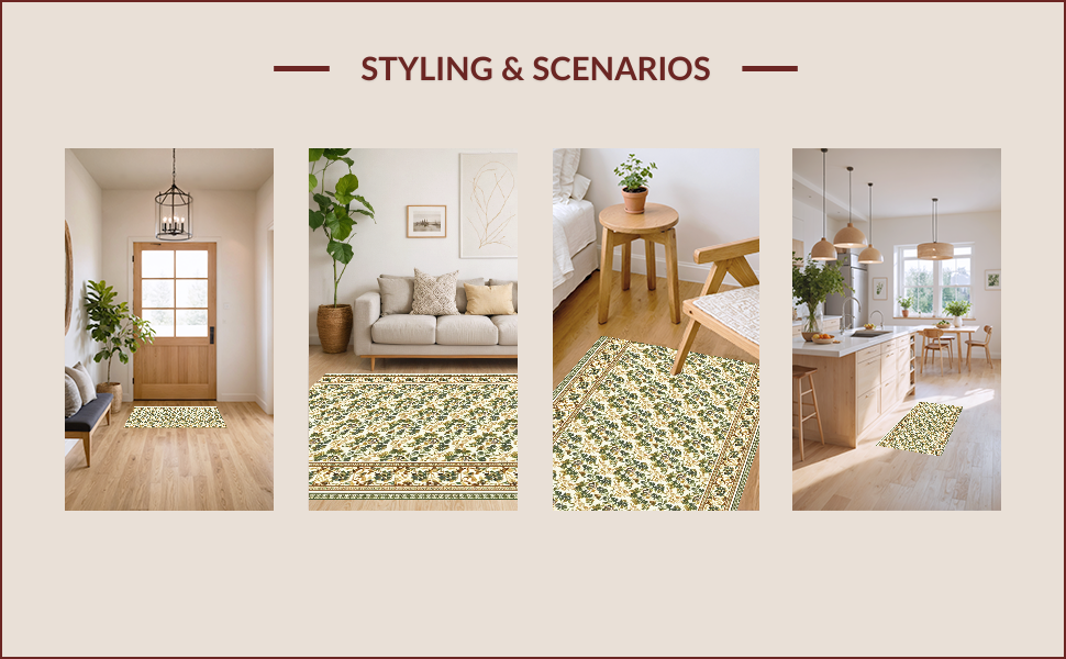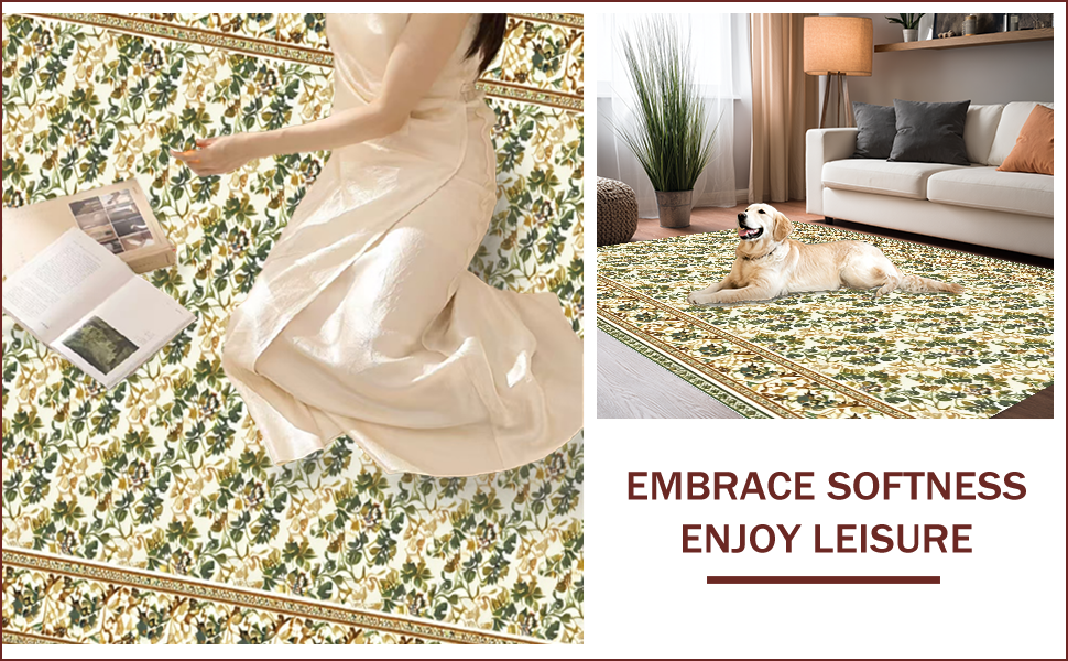 Ultra Soft Area Rug, Non Slip, Stain Resistant, Washable Area Rugs for Living Room, Bedroom, Boho Floral Serenity Space Enhancer(Ivory) Overview: