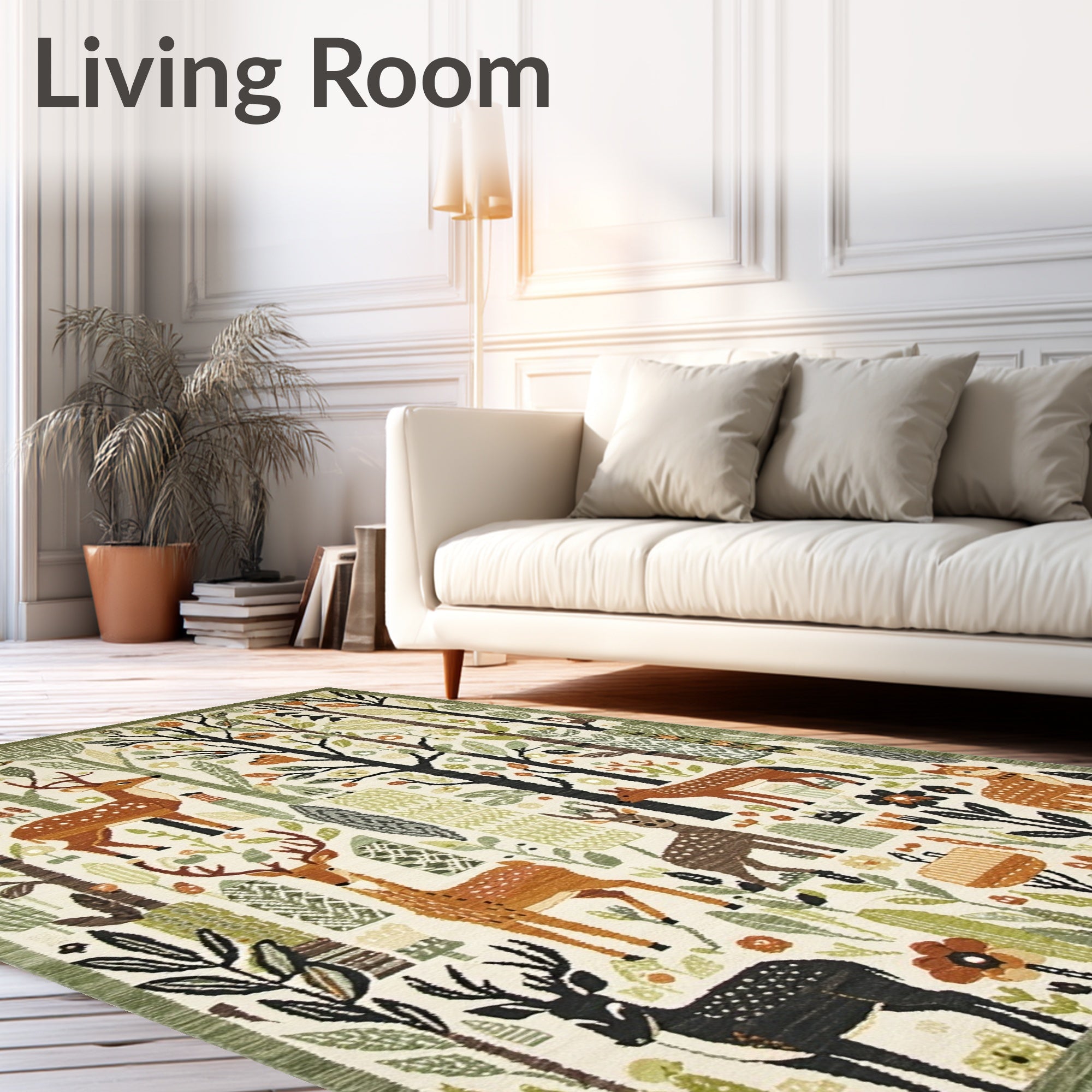 Ultra Soft Area Rug, Non Slip, Stain Resistant, Washable Area Rugs for Living Room, Bedroom, Boho Forest Friends(Beige) Overview: