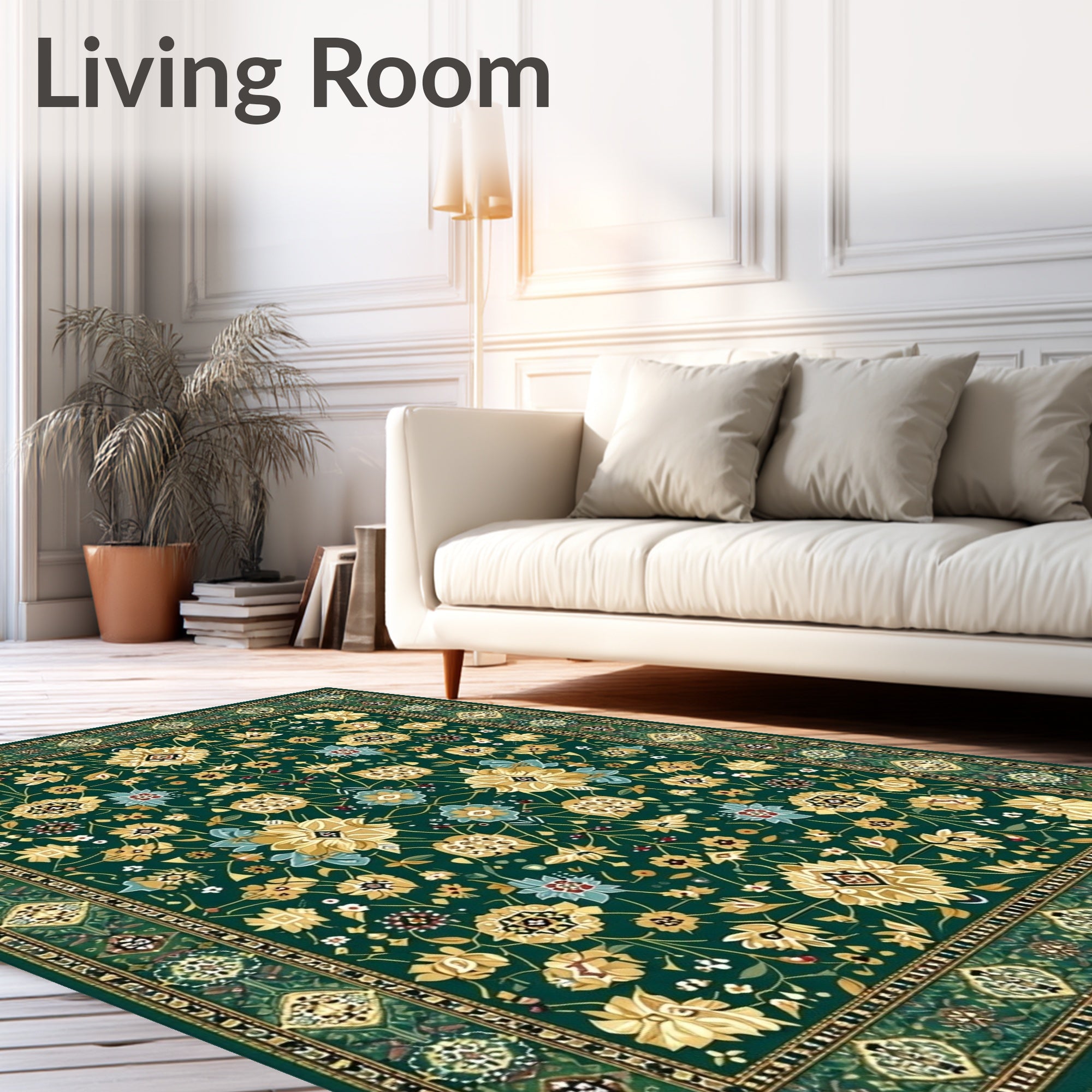 Ultra Soft Area Rug, Non Slip, Stain Resistant, Washable Area Rugs for Living Room, Bedroom, Boho Fusion Area(Green) Overview: