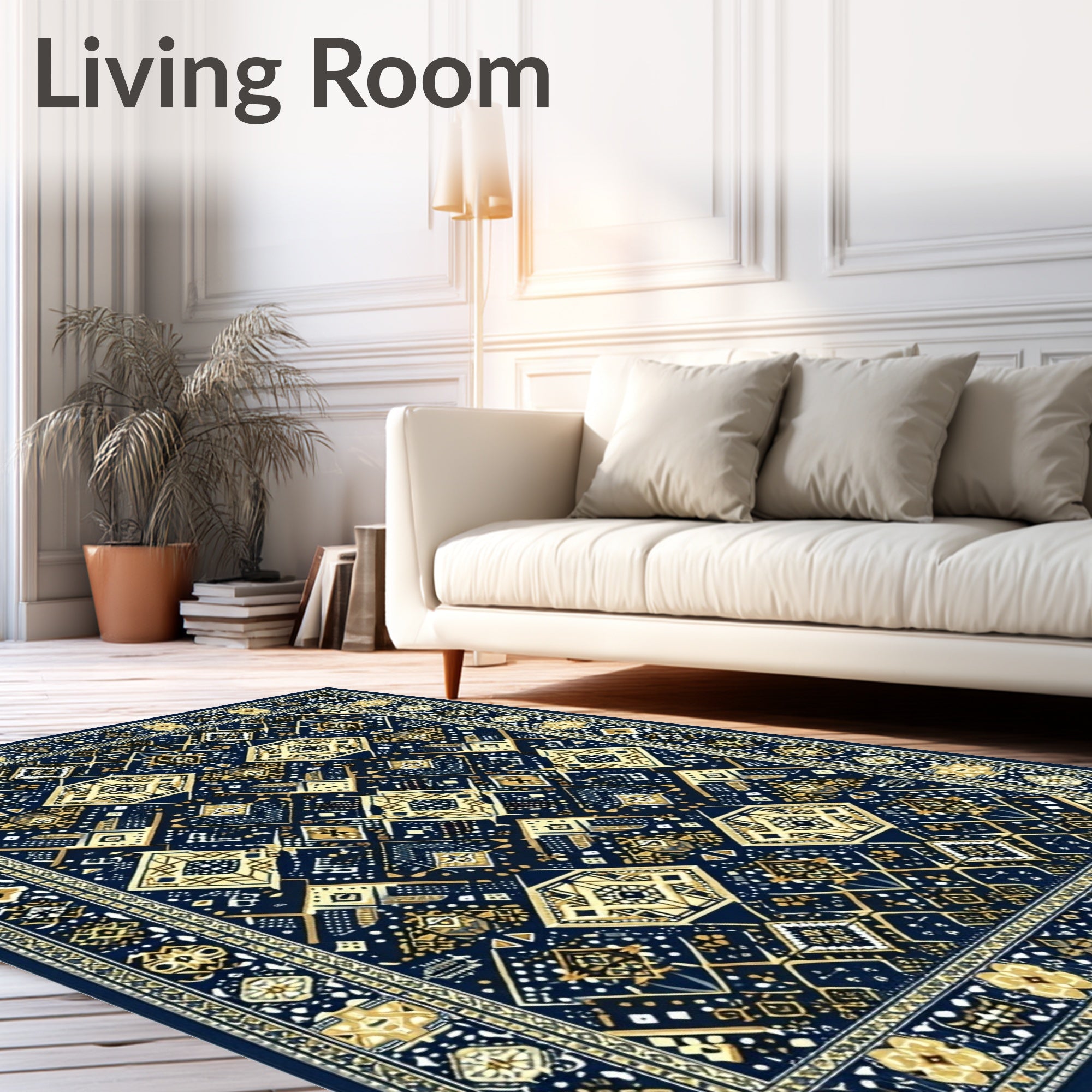 Ultra Soft Area Rug, Non Slip, Stain Resistant, Washable Area Rugs for Living Room, Bedroom, Boho Geometric for(Blue) Overview: