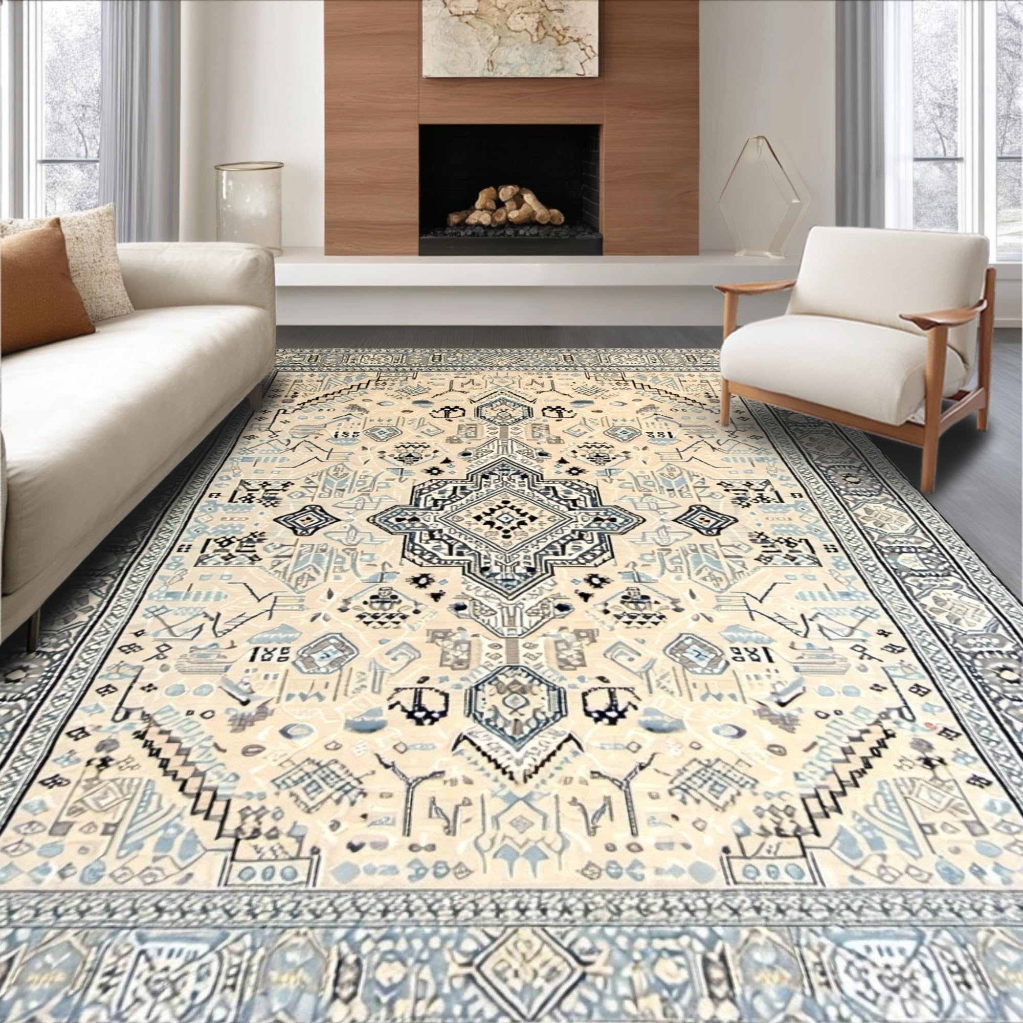 Ultra Soft Area Rug, Non Slip, Stain Resistant, Washable Area Rugs for Living Room, Bedroom, Boho Half Moon Beige & Cream(Beige) Overview: