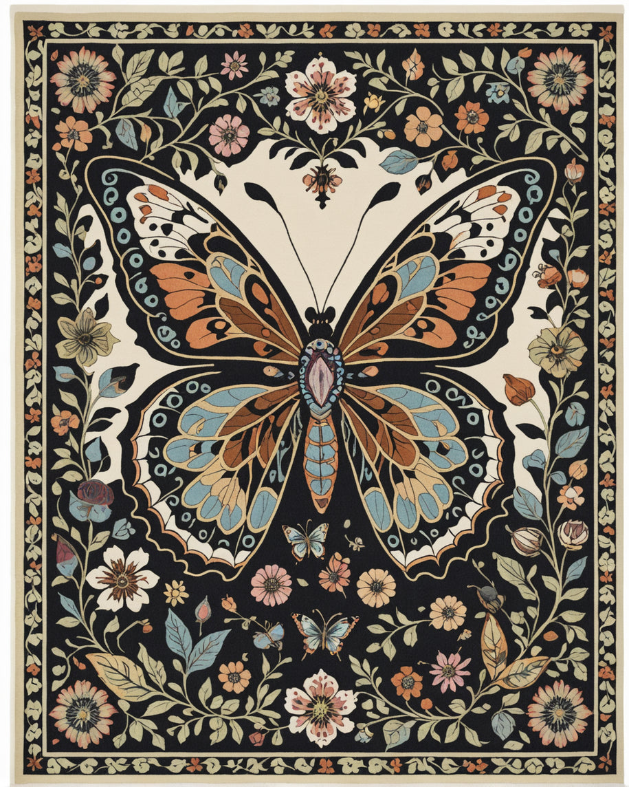 Flatwoven High Traffic Area Rug, Boho Insect Print Non Slip Playroom, Non Slip, Stain Resistant, Washable Area Rugs for Living Room, Bedroom (Black) Overview: