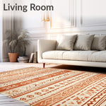 Ultra Soft Area Rug, Non Slip, Stain Resistant, Washable Area Rugs for Living Room, Bedroom, Boho Inspired Beige Runner With Artisanal Tribal Geometric Design(Orange) Overview: