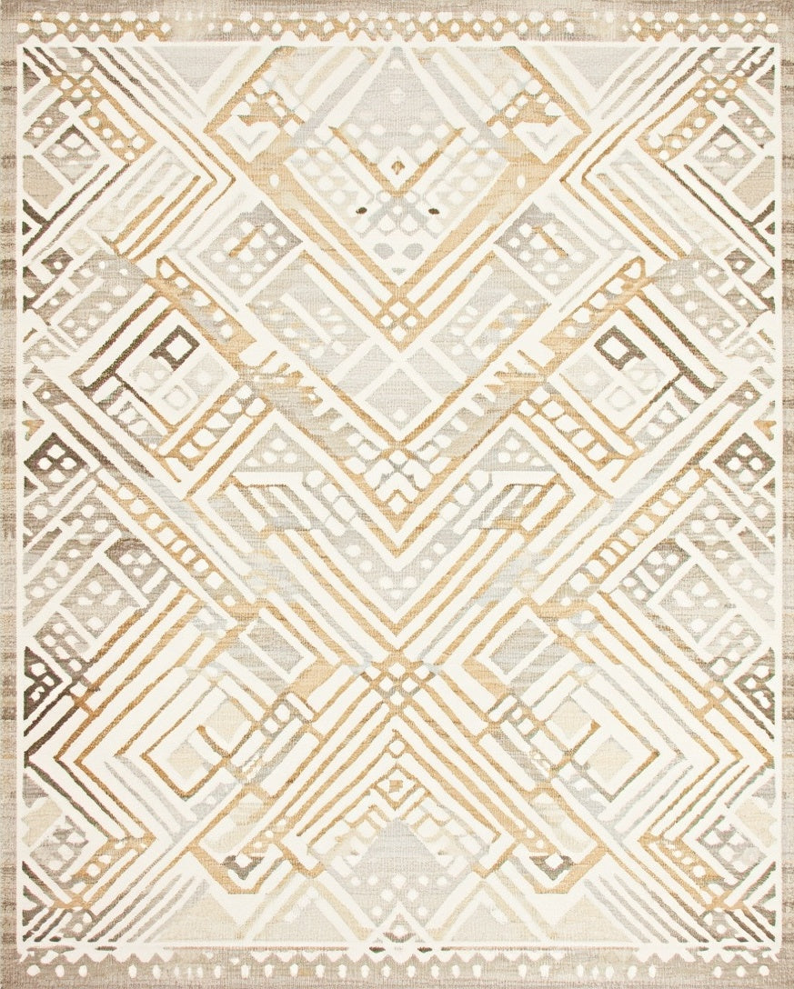 Boho Inspired Lattice Area with Abstract Diamond and Chevron Details(Beige)