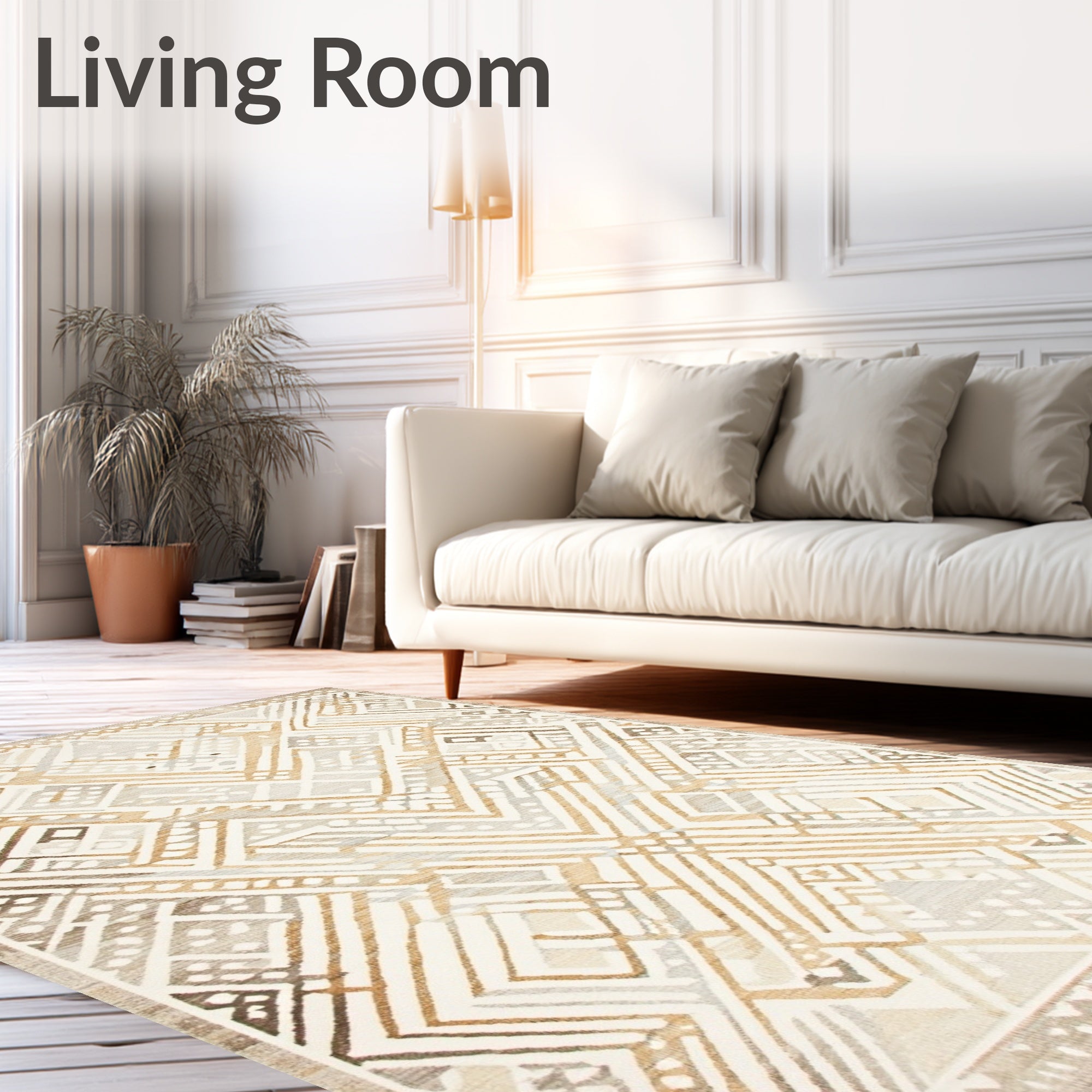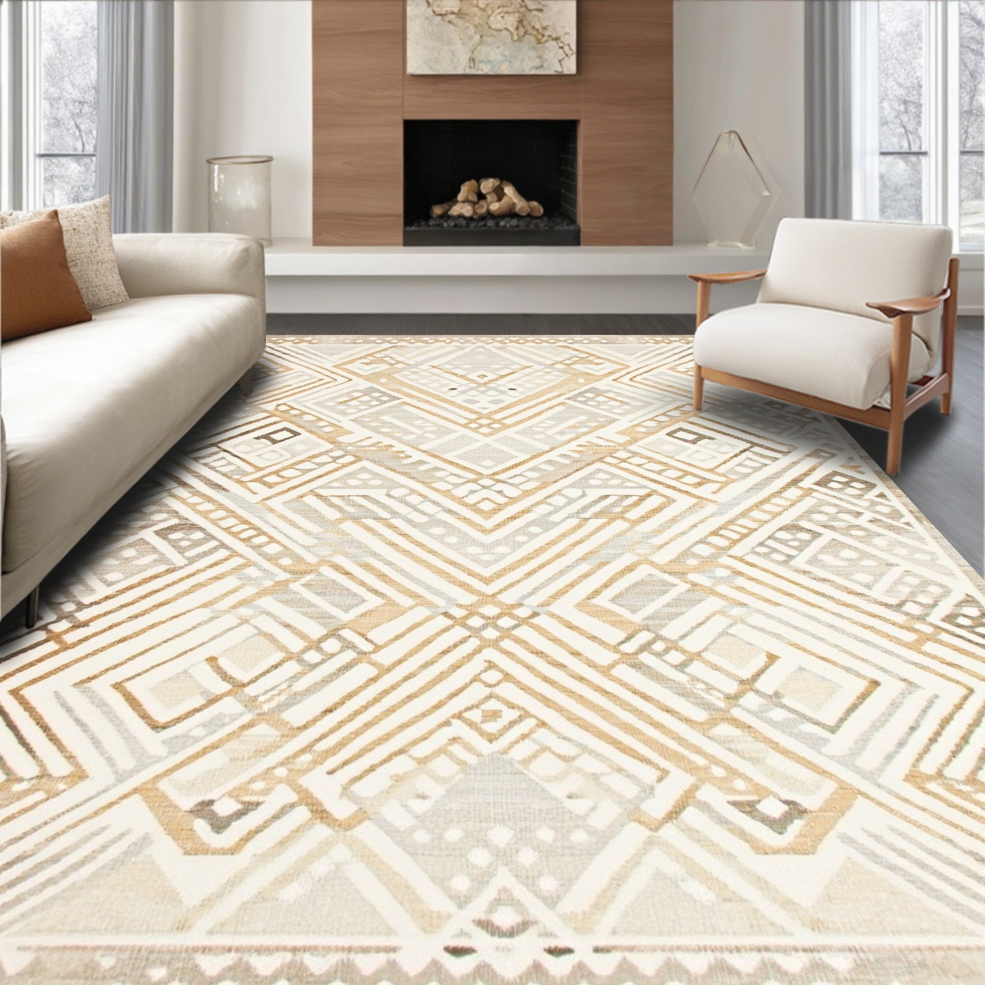 Ultra Soft Area Rug, Non Slip, Stain Resistant, Washable Area Rugs for Living Room, Bedroom, Boho Inspired Lattice Area with Abstract Diamond and Chevron Details(Beige) Overview:
