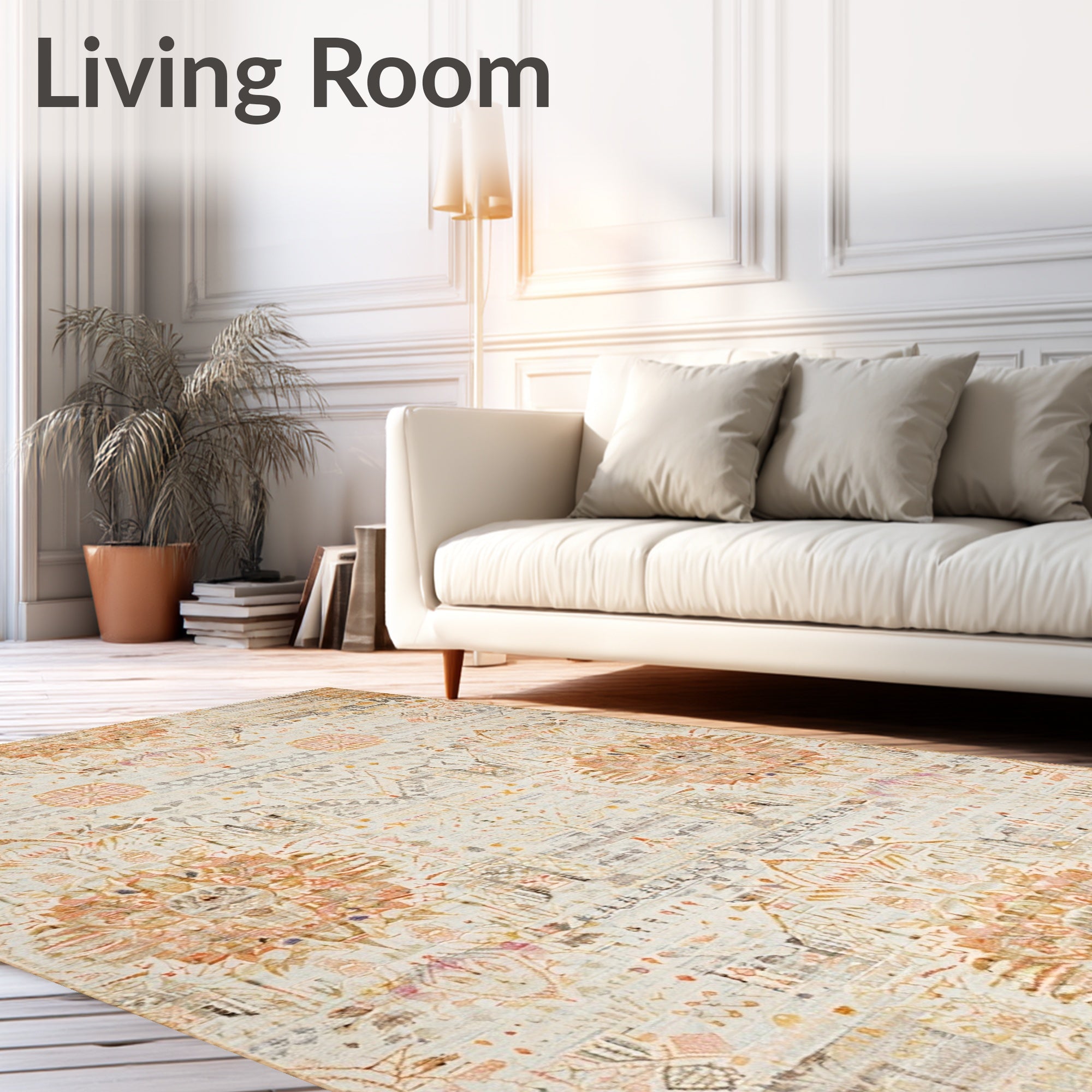 Ultra Soft Area Rug, Non Slip, Stain Resistant, Washable Area Rugs for Living Room, Bedroom, Boho Inspired with Neutral Tones(Orange) Overview: