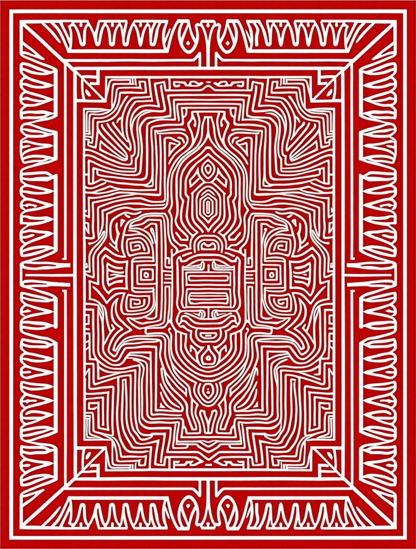 Boho Interlocking Inspired with Playful Graphic Details(Red)