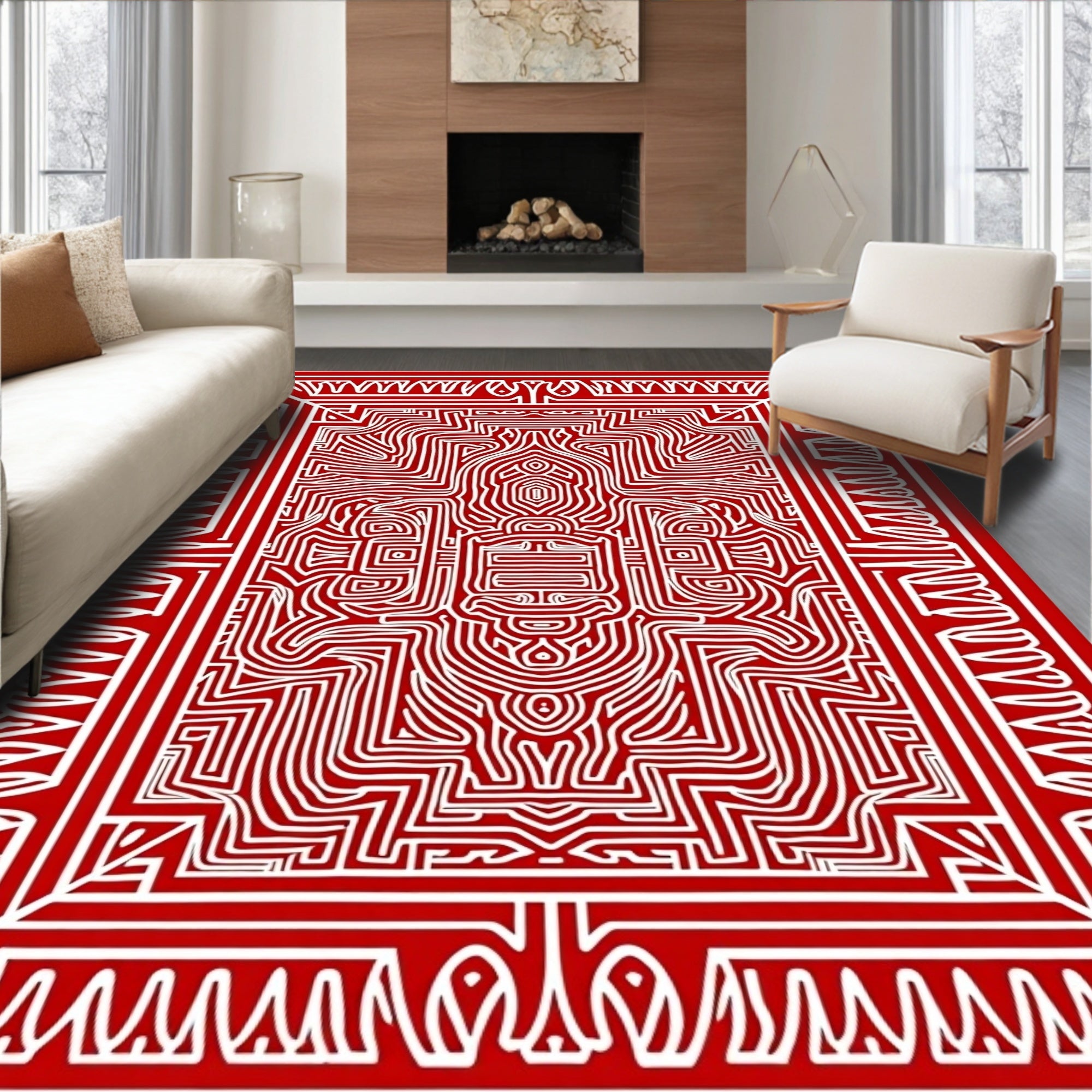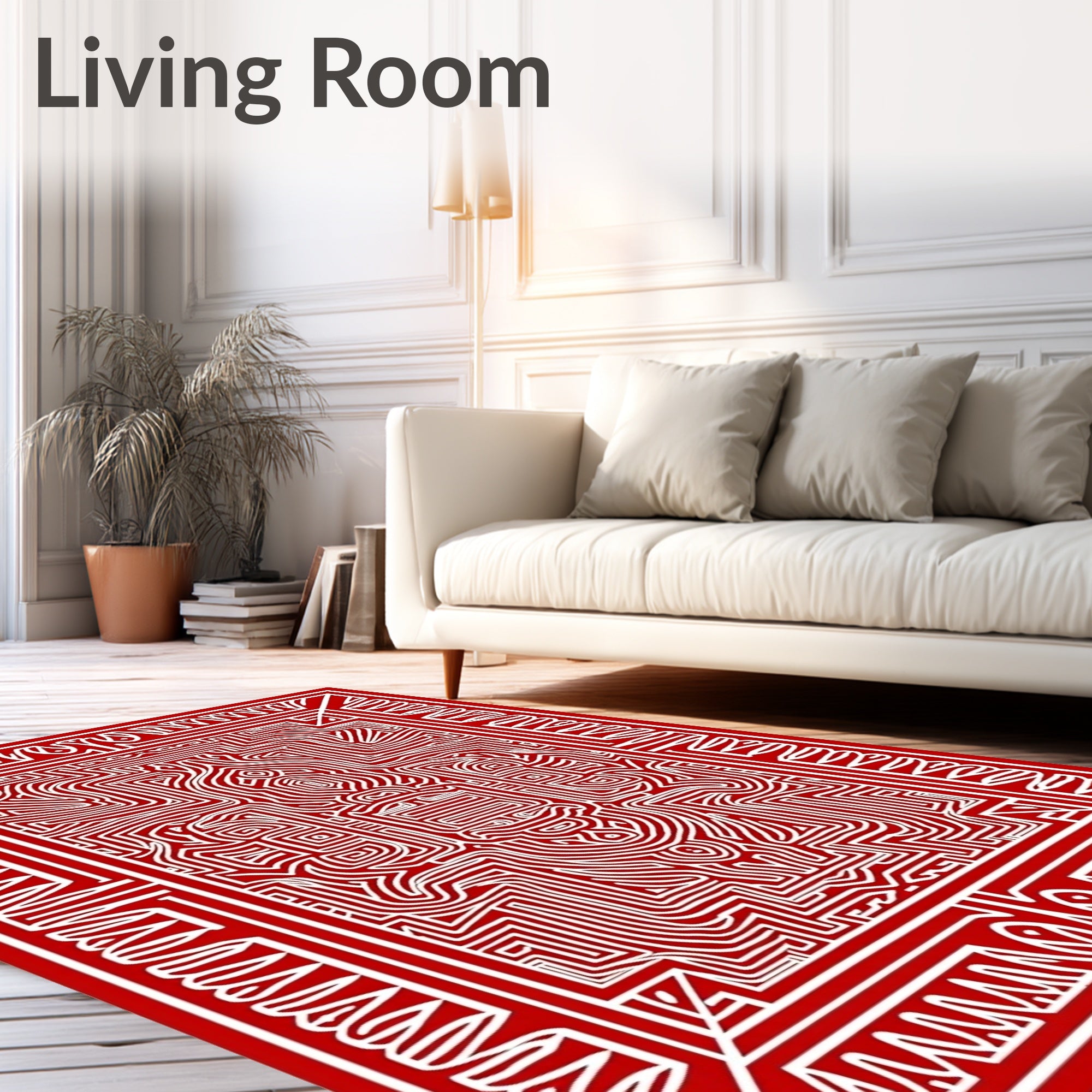 Ultra Soft Area Rug, Non Slip, Stain Resistant, Washable Area Rugs for Living Room, Bedroom, Boho Interlocking Inspired with Playful Graphic Details(Red) Overview:
