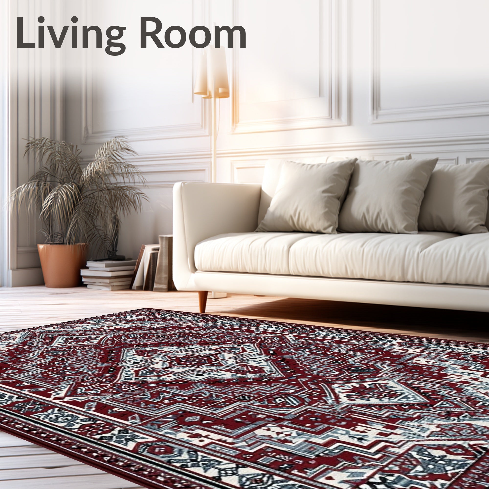 Ultra Soft Area Rug, Non Slip, Stain Resistant, Washable Area Rugs for Living Room, Bedroom, Boho Intricate(Red) Overview: