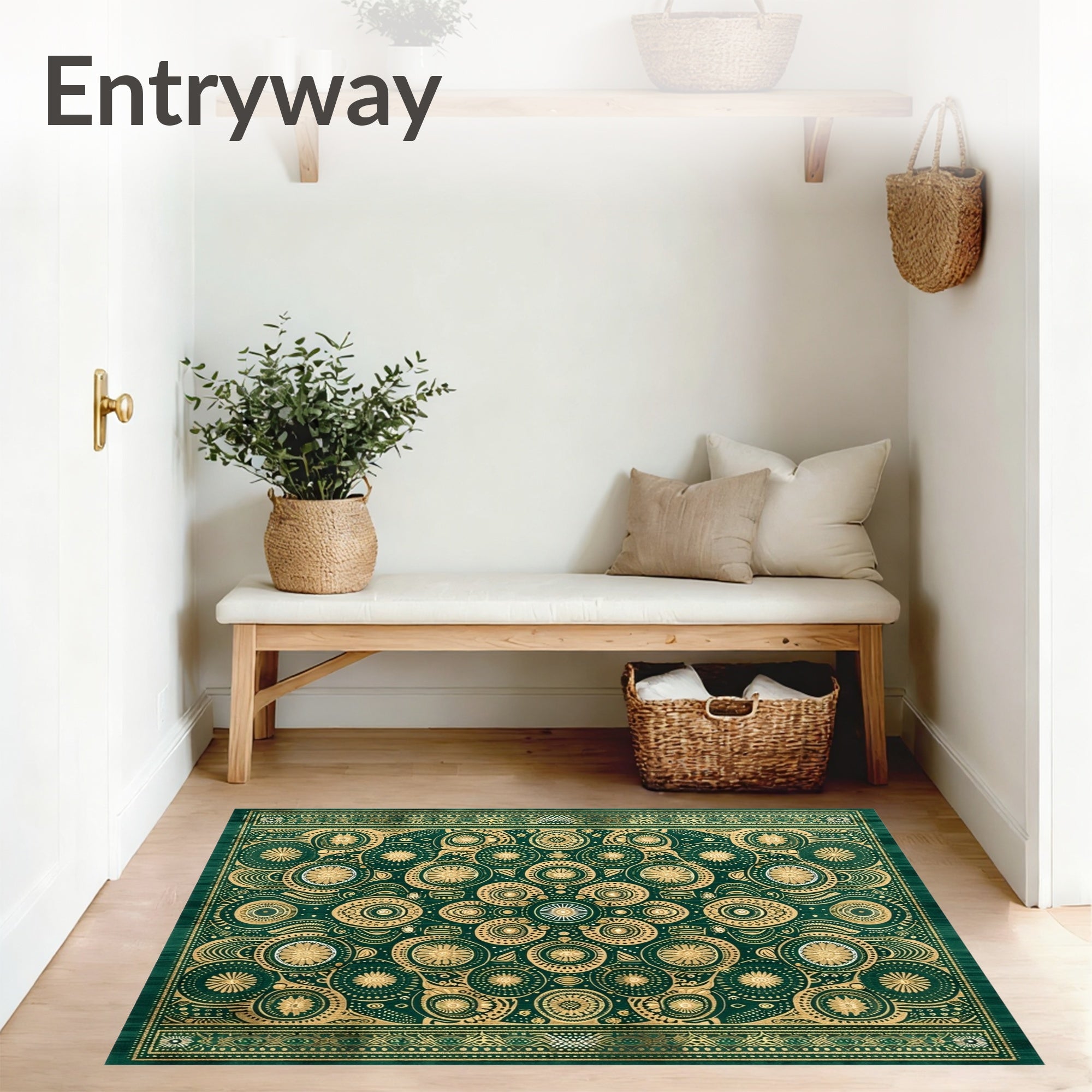 Ultra Soft Area Rug, Non Slip, Stain Resistant, Washable Area Rugs for Living Room, Bedroom, Boho Jute(Green) Overview: