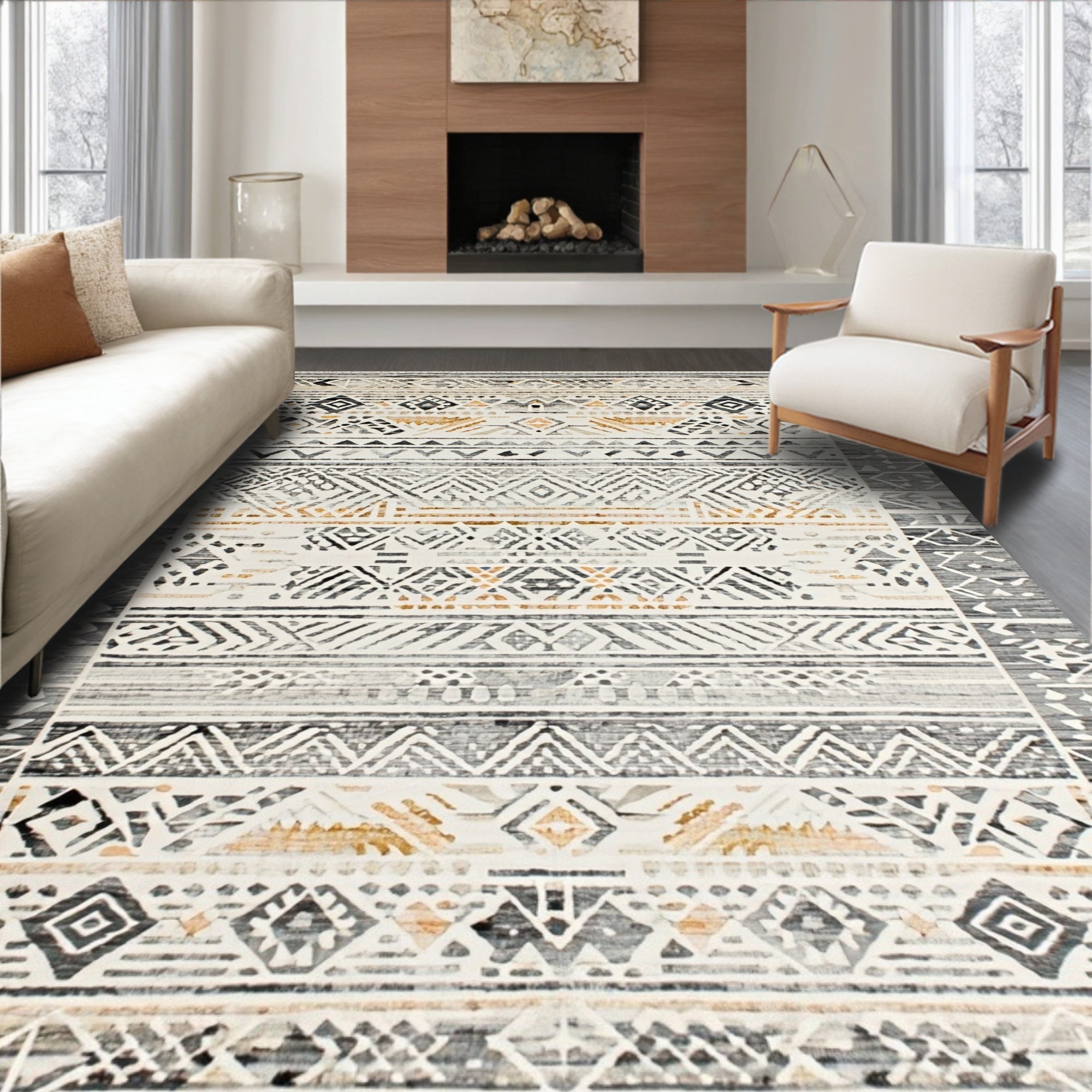 Ultra Soft Area Rug, Non Slip, Stain Resistant, Washable Area Rugs for Living Room, Bedroom, Boho Kitchen Runner of Non Slip Beige Grey(Gray) Overview: