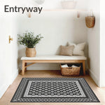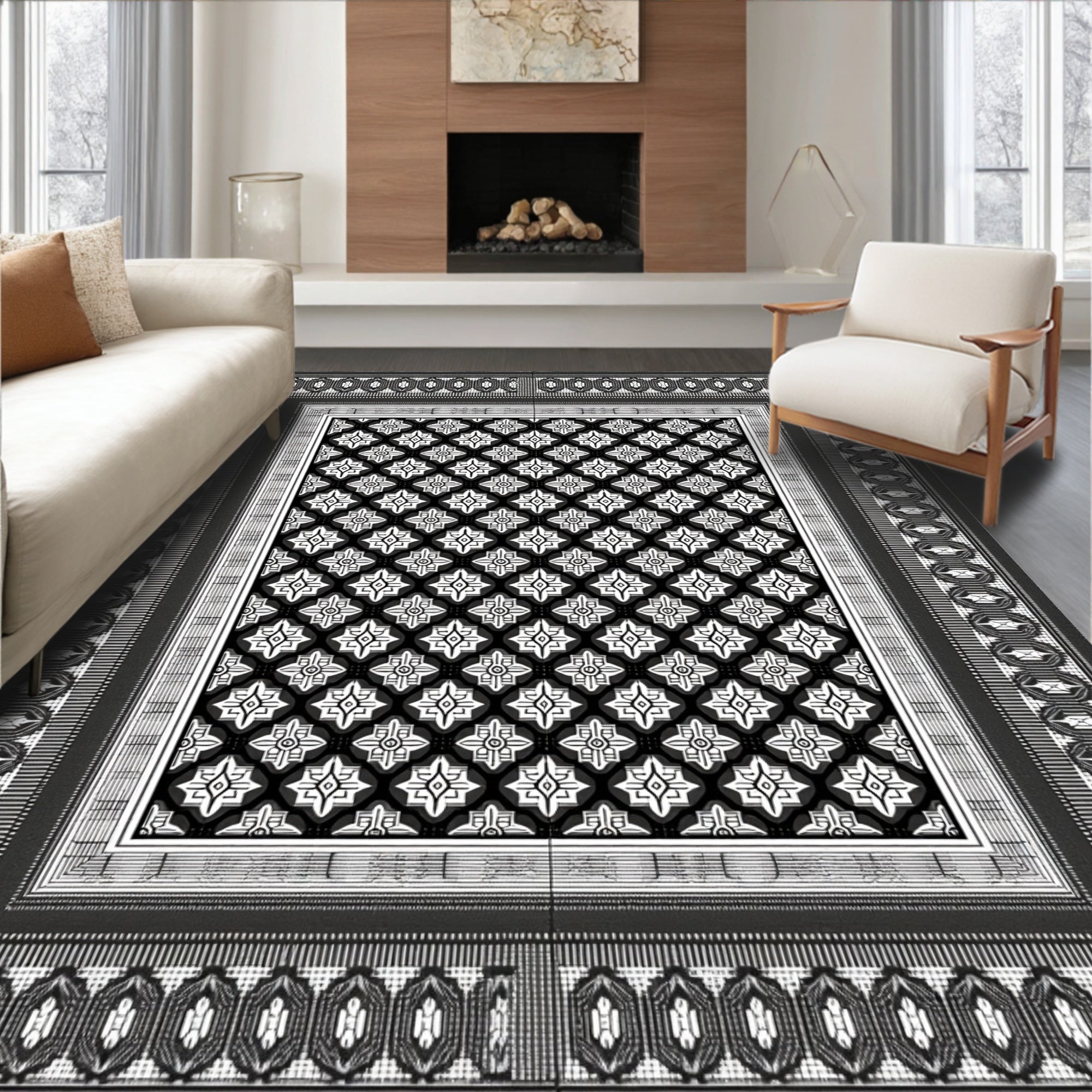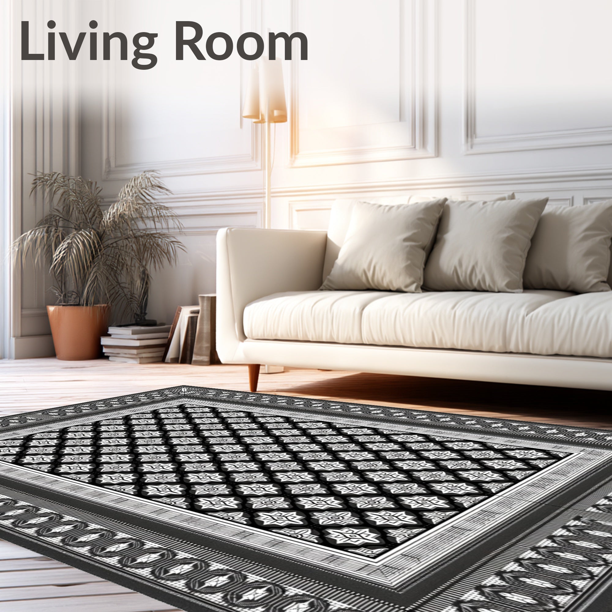 Ultra Soft Area Rug, Non Slip, Stain Resistant, Washable Area Rugs for Living Room, Bedroom, Boho Lattice with Distressed Filigree Details(Black) Overview: