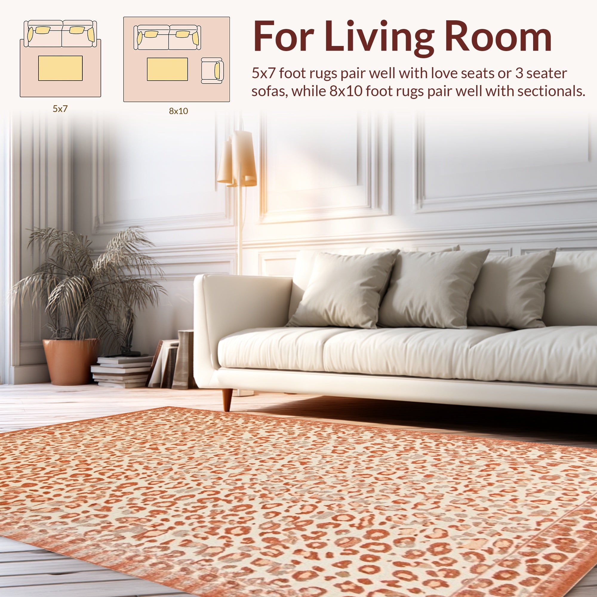 Ultra Soft Area Rug, Non Slip, Stain Resistant, Washable Area Rugs for Living Room, Bedroom, Boho Leopard Print Carpet Unique Spot Pattern Rug for Entryway(Orange) Overview: