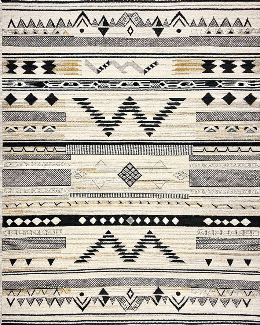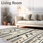 Ultra Soft Area Rug, Non Slip, Stain Resistant, Washable Area Rugs for Living Room, Bedroom, Boho Luxe Area with Tribal Chevron Stripes and Artistic Contrast Design(Black) Overview: