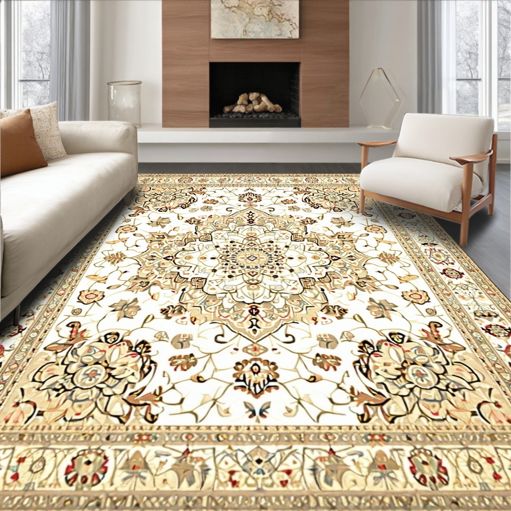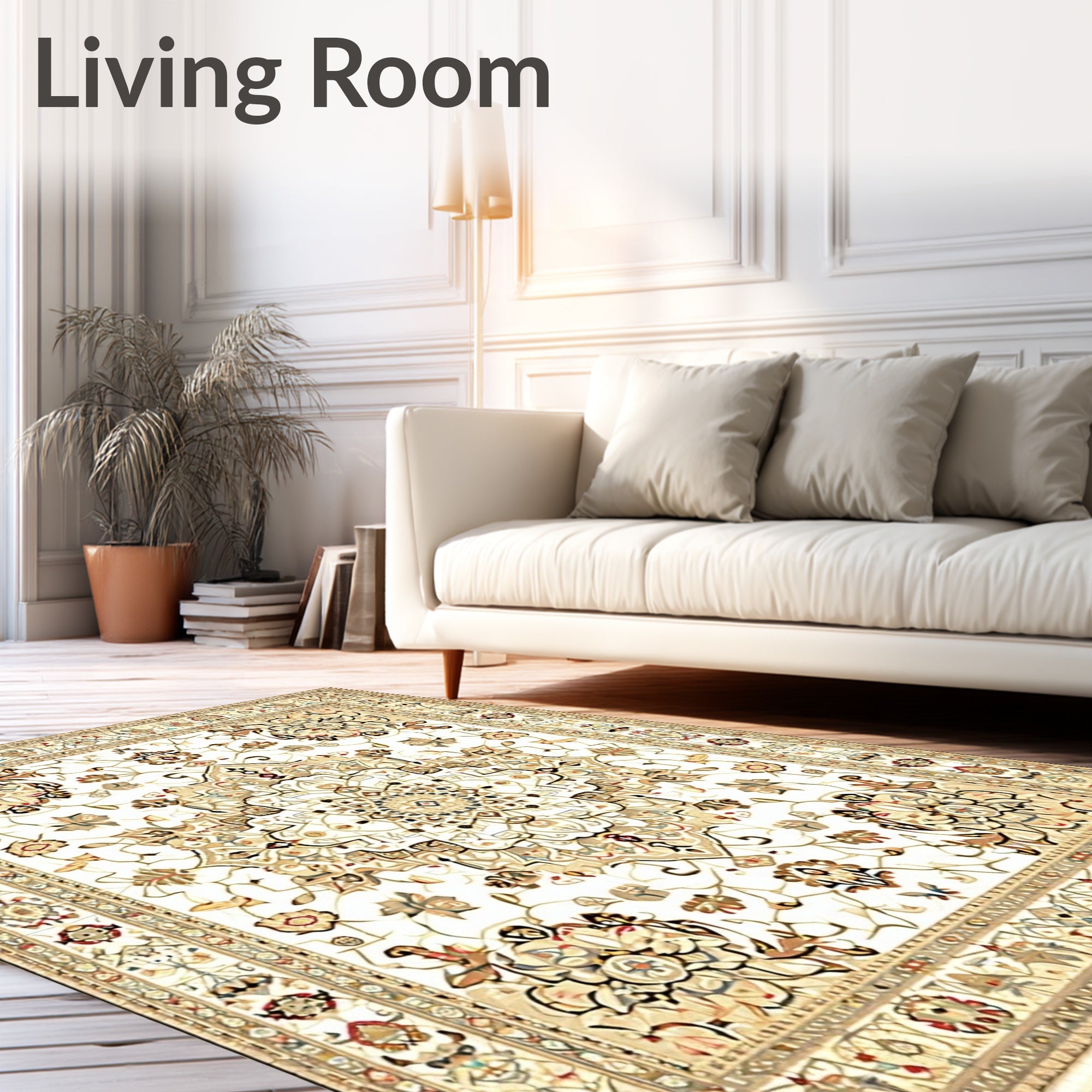 Ultra Soft Area Rug, Non Slip, Stain Resistant, Washable Area Rugs for Living Room, Bedroom, Boho Medallion Area Showcasing Ornate Centerpiece and Muted Earth Palette(Beige) Overview:
