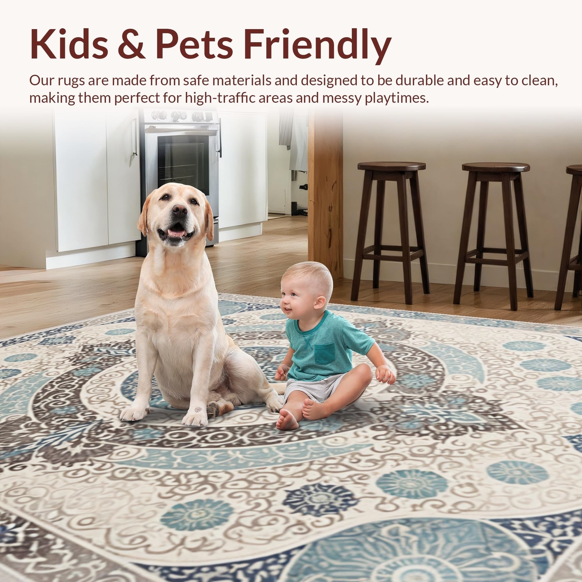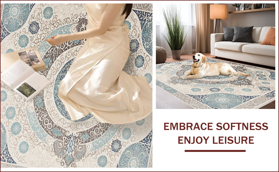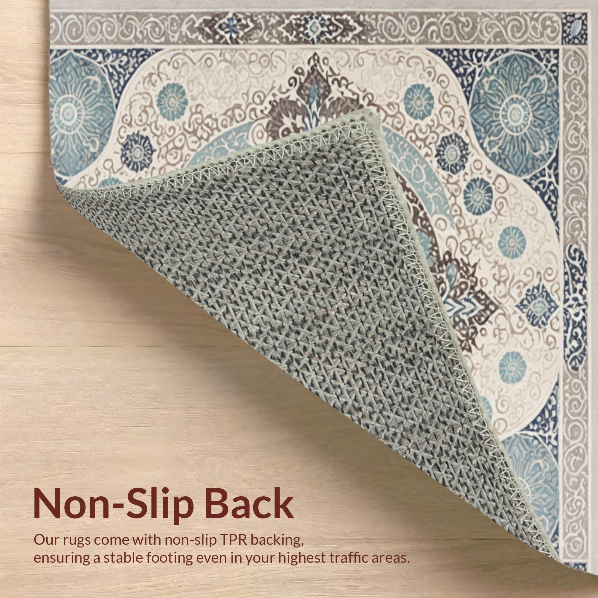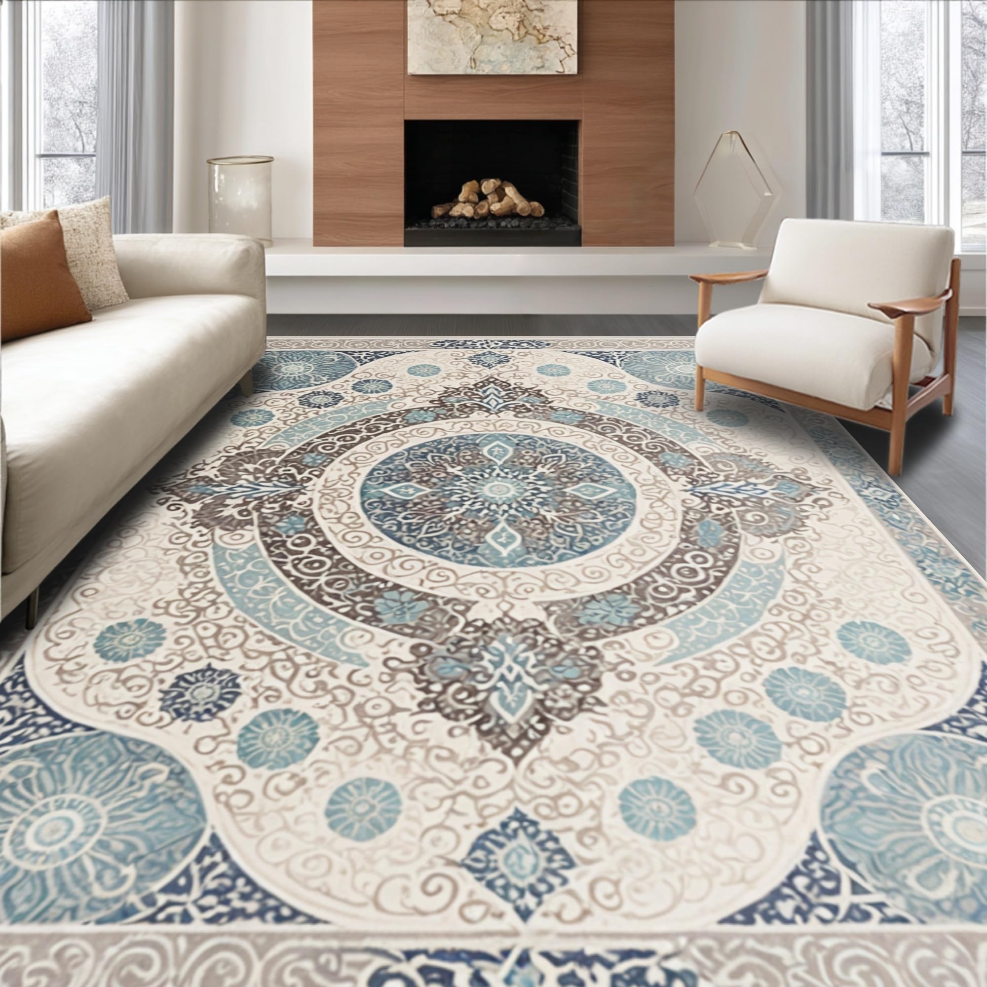 Ultra Soft Area Rug, Non Slip, Stain Resistant, Washable Area Rugs for Living Room, Bedroom, Boho Medallion Bedroom Area Rug for Minimal Living(Beige) Overview: