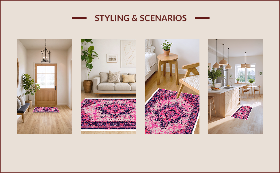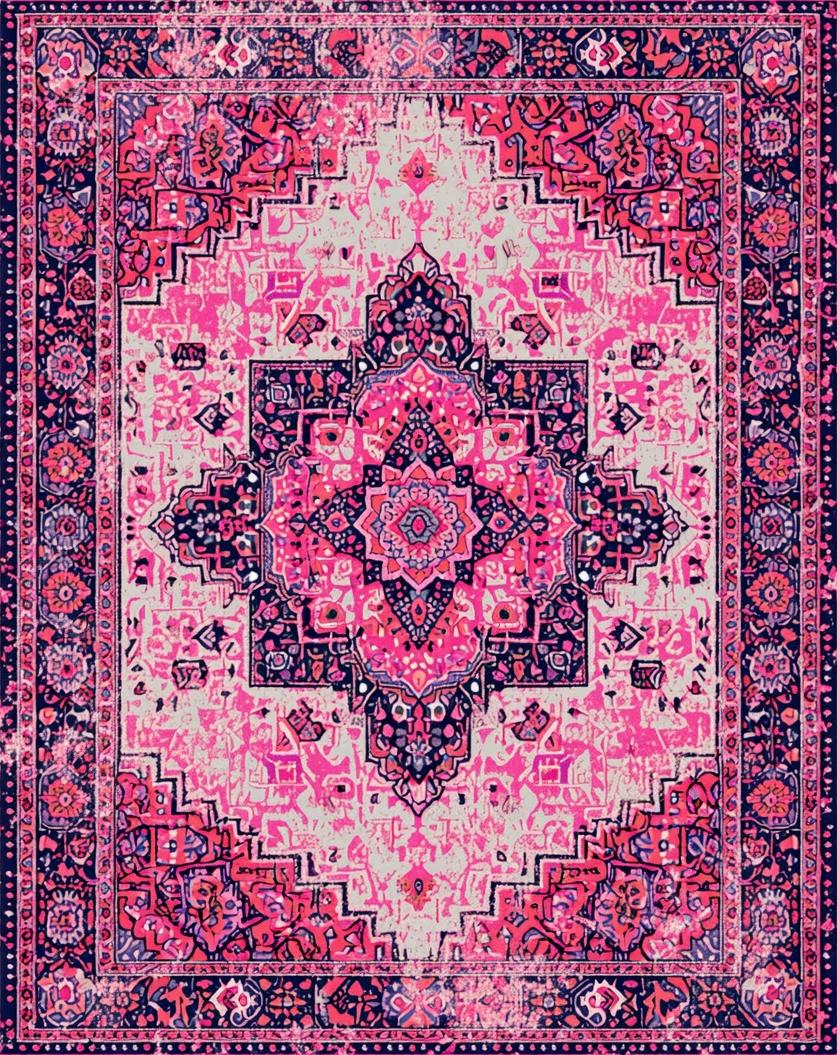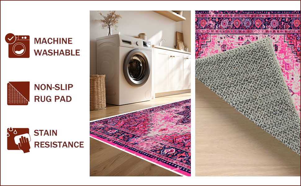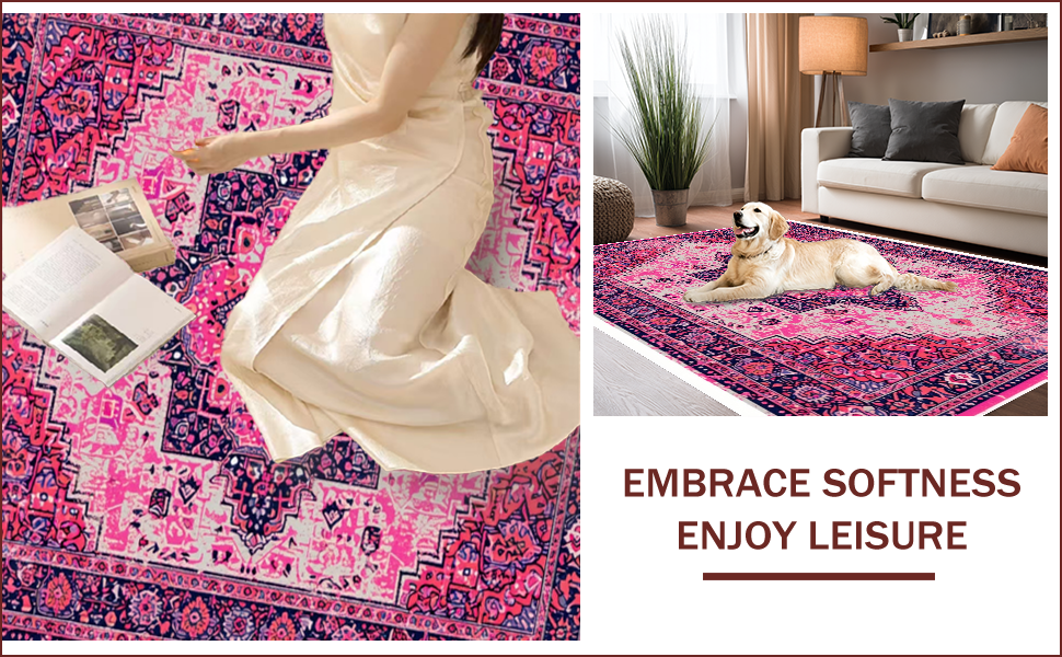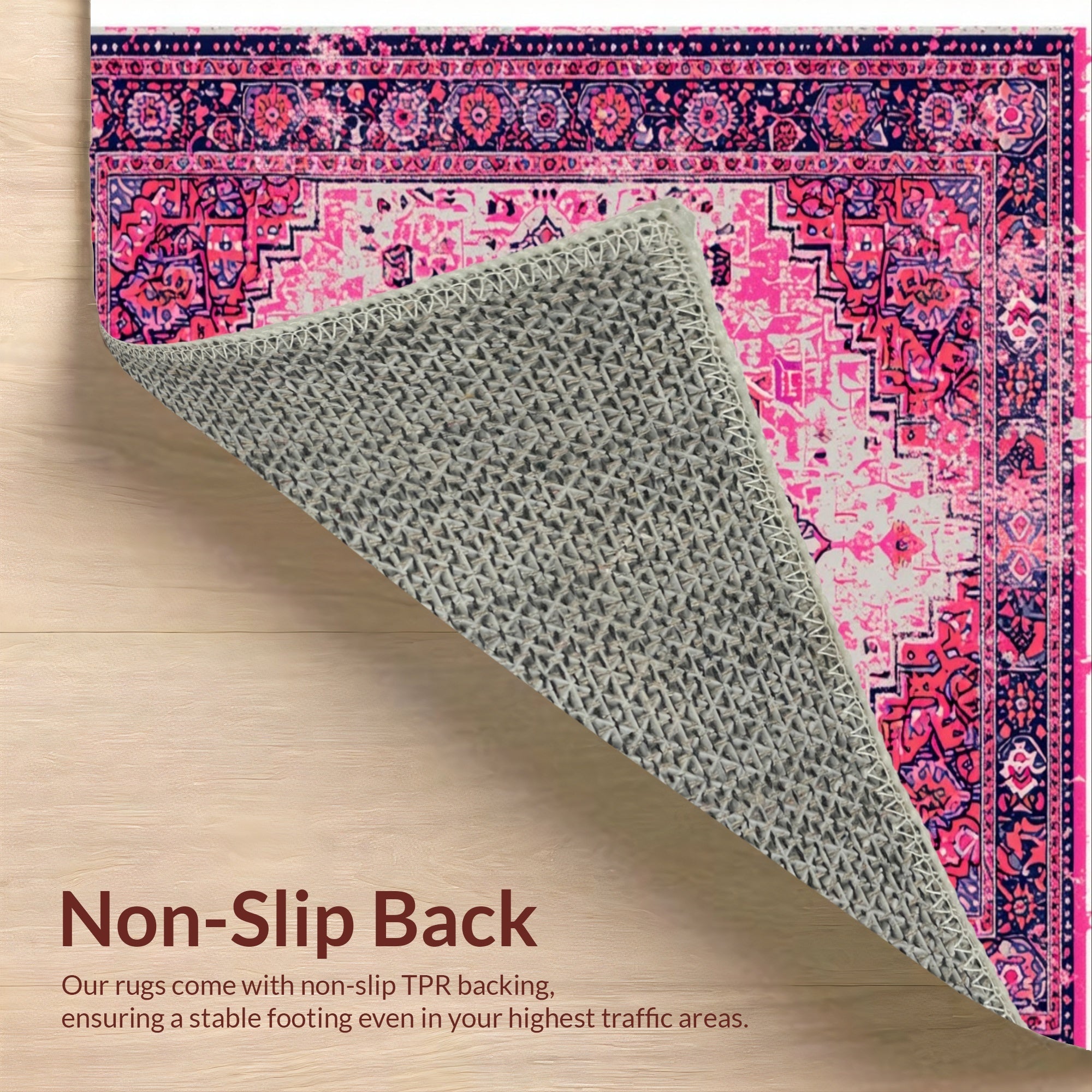 Ultra Soft Area Rug, Non Slip, Stain Resistant, Washable Area Rugs for Living Room, Bedroom, Boho Medallion Distressed(Pink) Overview: