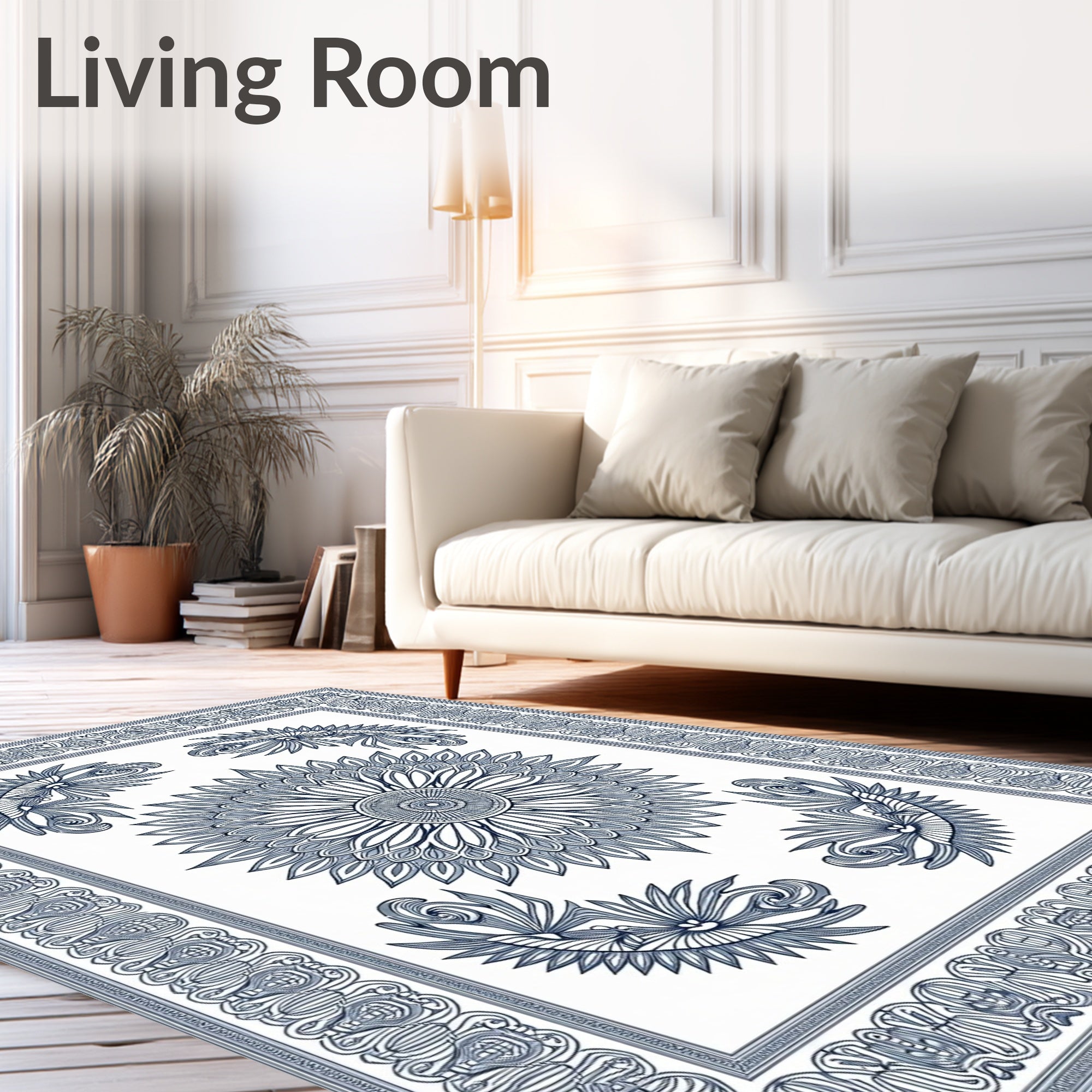Ultra Soft Area Rug, Non Slip, Stain Resistant, Washable Area Rugs for Living Room, Bedroom, Boho Medallion Print Hallway Easy Clean(Blue) Overview: