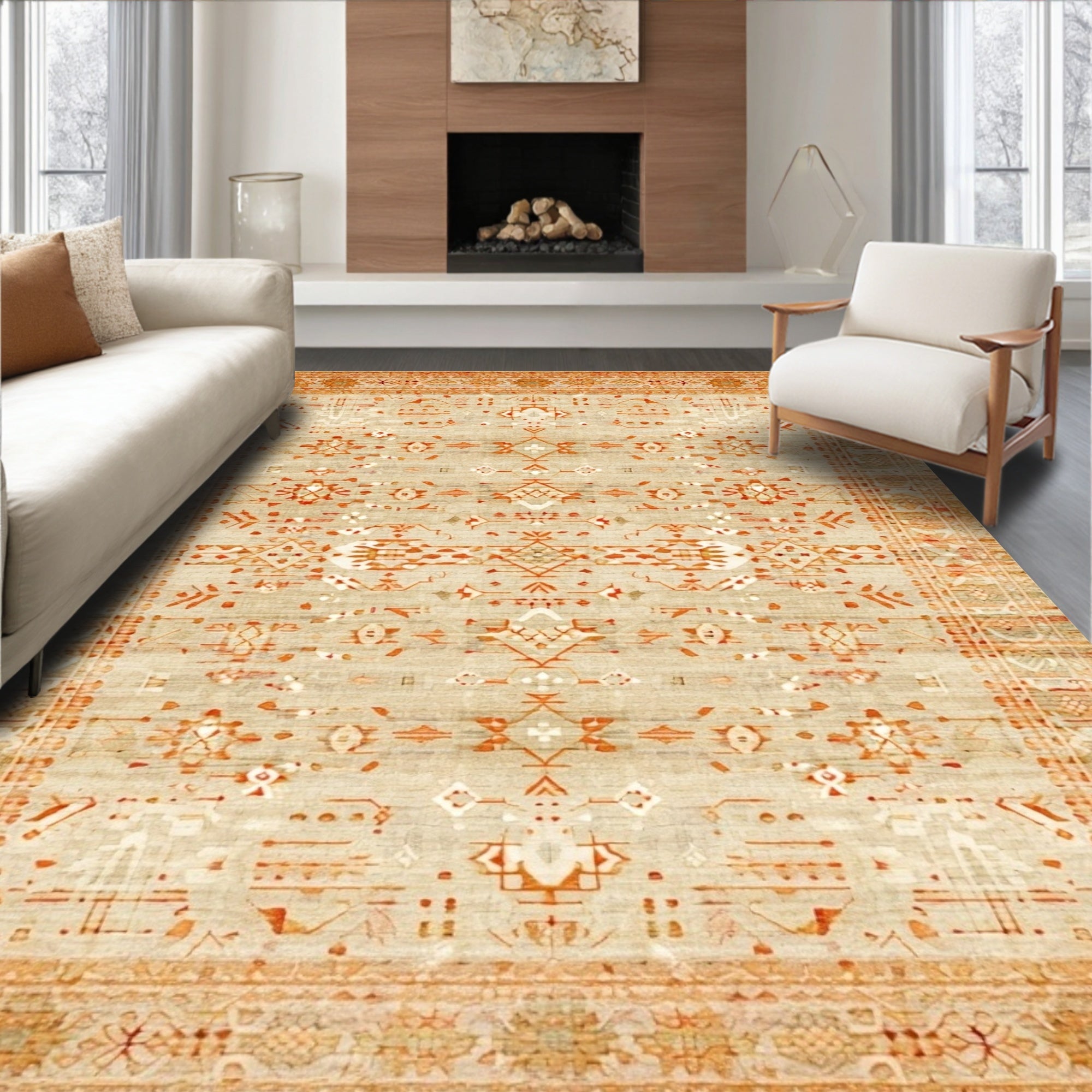 Ultra Soft Area Rug, Non Slip, Stain Resistant, Washable Area Rugs for Living Room, Bedroom, Boho Morden Tan Rug with Edge Geometric Indoor Carpet(Beige) Overview: