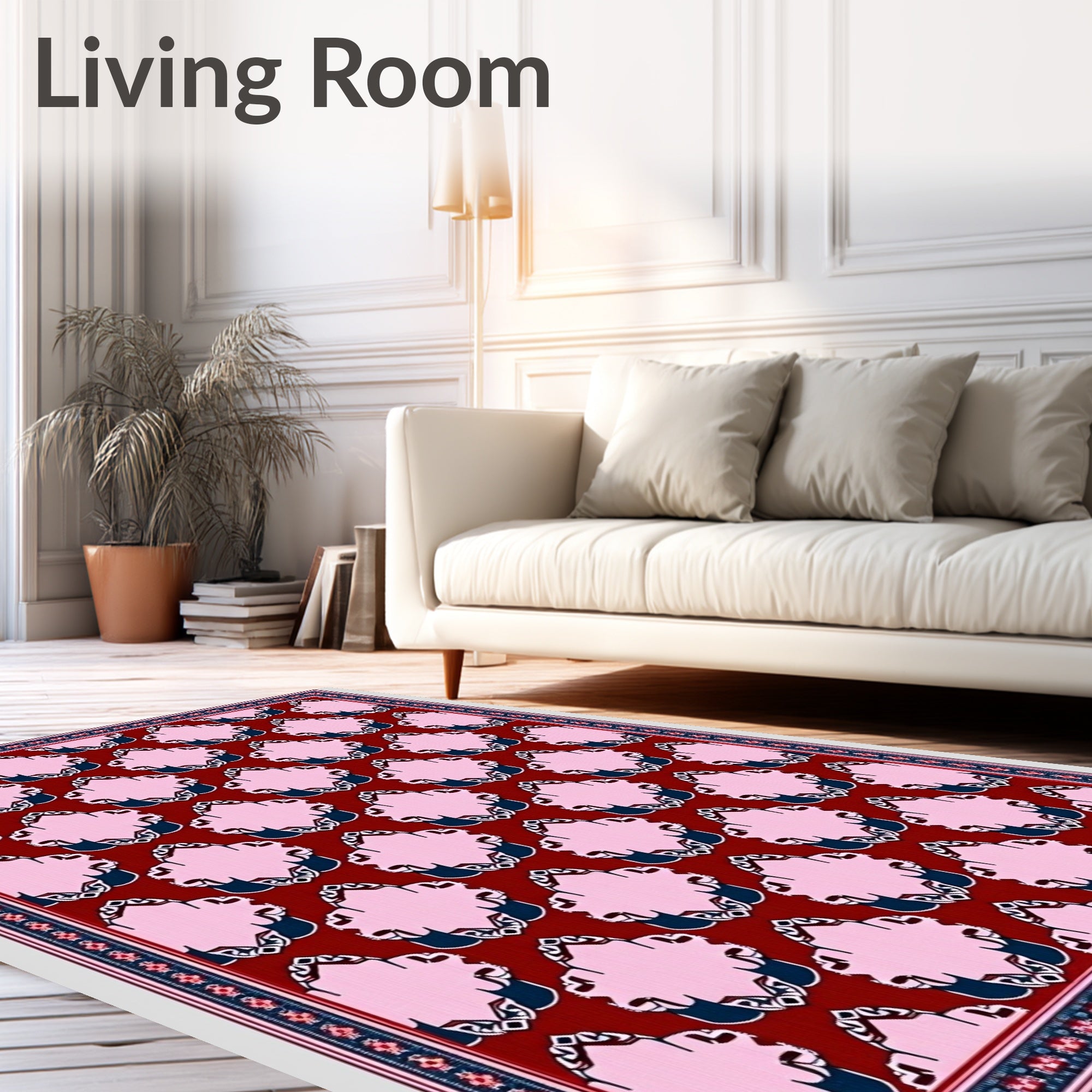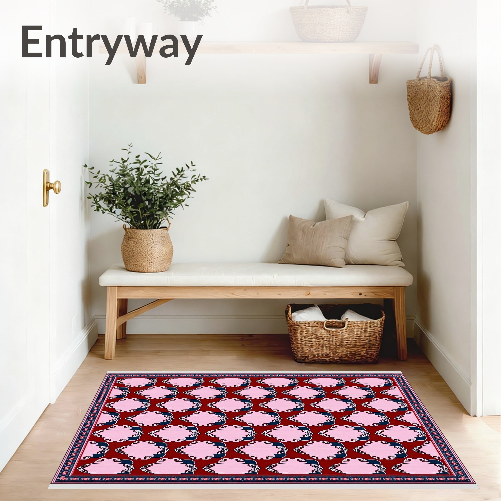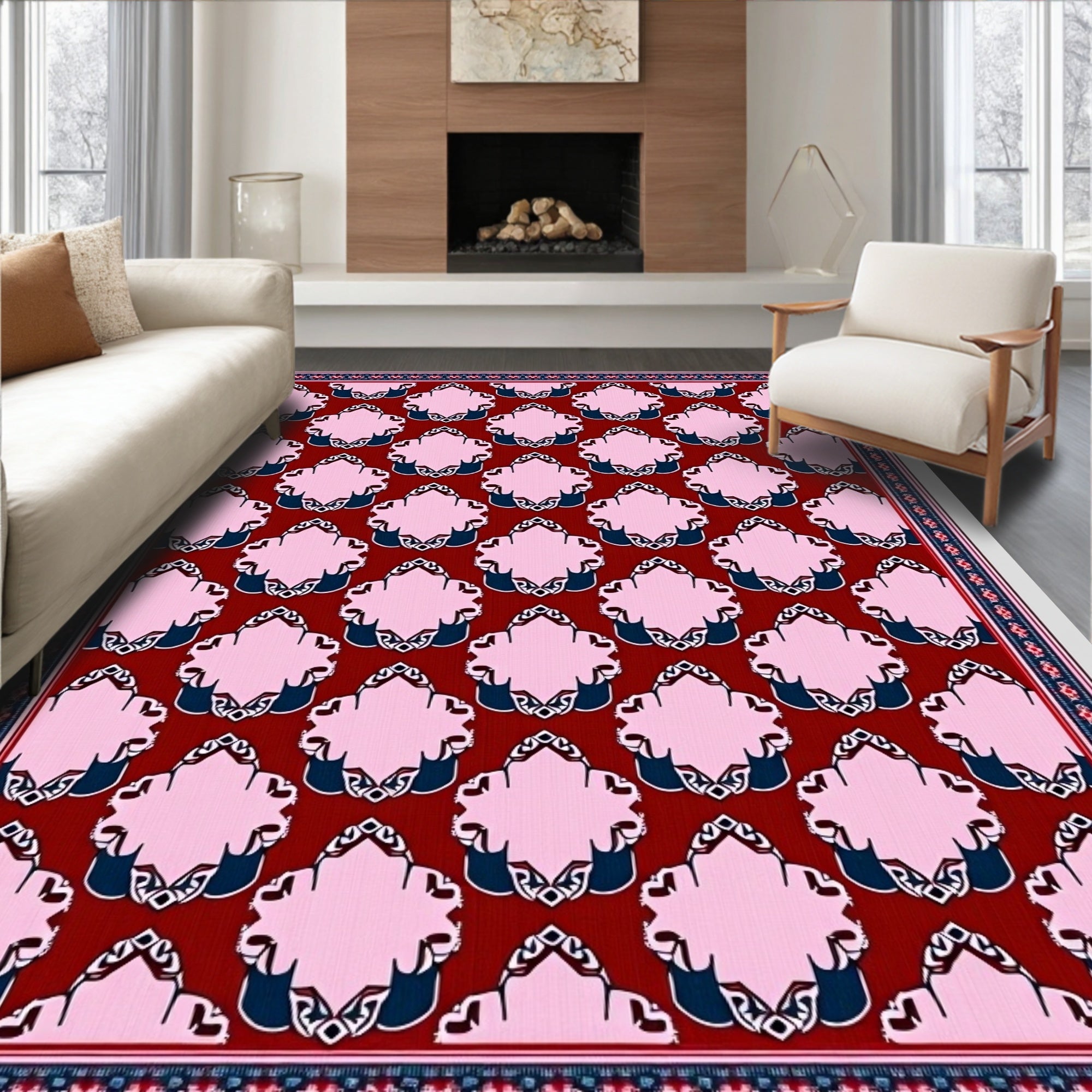 Ultra Soft Area Rug, Non Slip, Stain Resistant, Washable Area Rugs for Living Room, Bedroom, Boho Mosaic Featuring Layered Accents(Red) Overview: