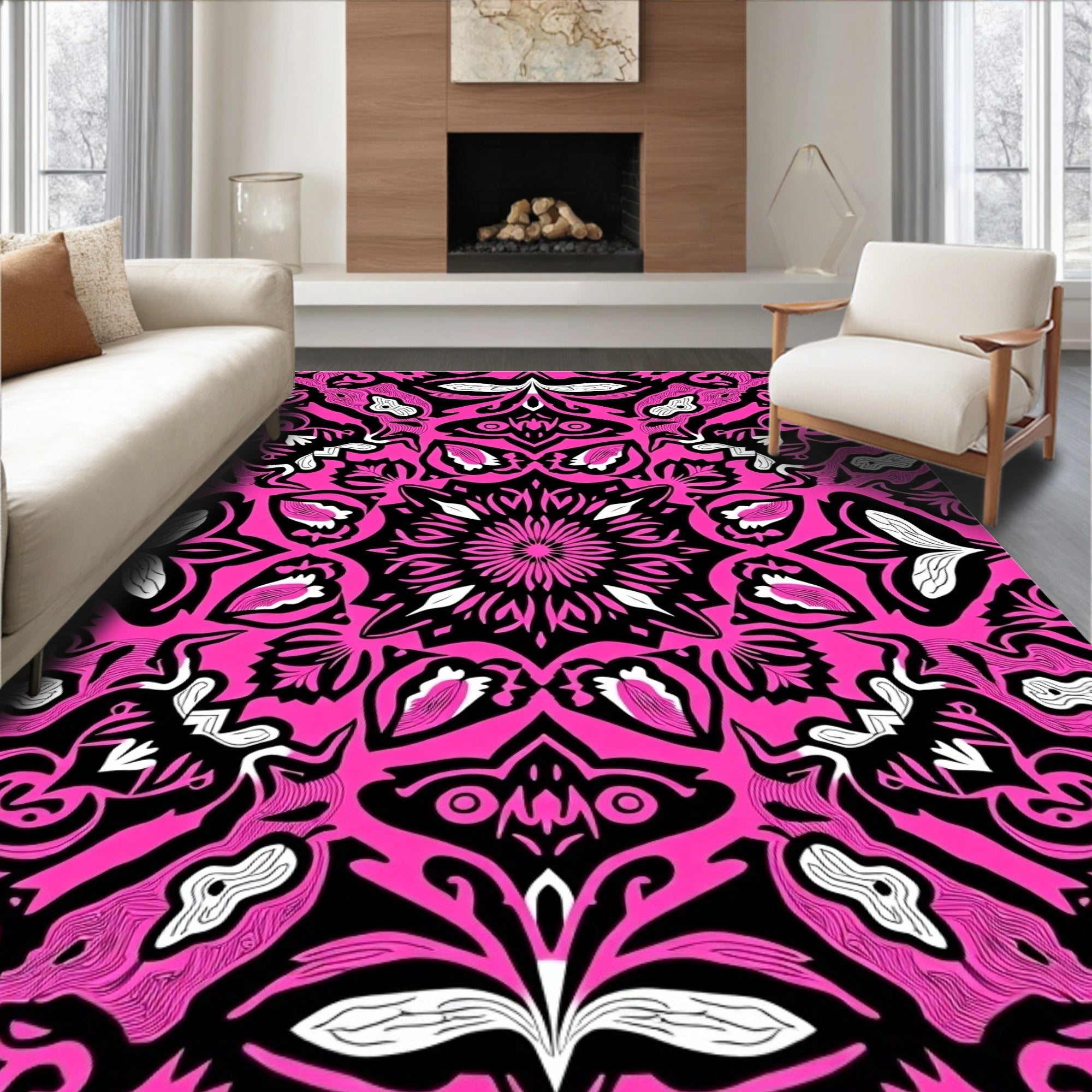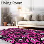 Ultra Soft Area Rug, Non Slip, Stain Resistant, Washable Area Rugs for Living Room, Bedroom, Boho Moth and Skull with Astral Symbols(Pink) Overview: