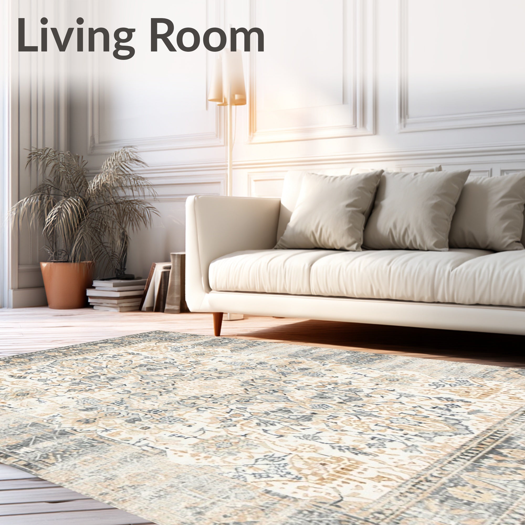 Ultra Soft Area Rug, Non Slip, Stain Resistant, Washable Area Rugs for Living Room, Bedroom, Boho Neutral with Geometric Design(Beige) Overview: