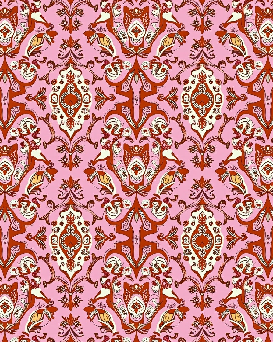 Boho Paisley Garden with Swirling Botanical Motifs(Pink)
