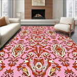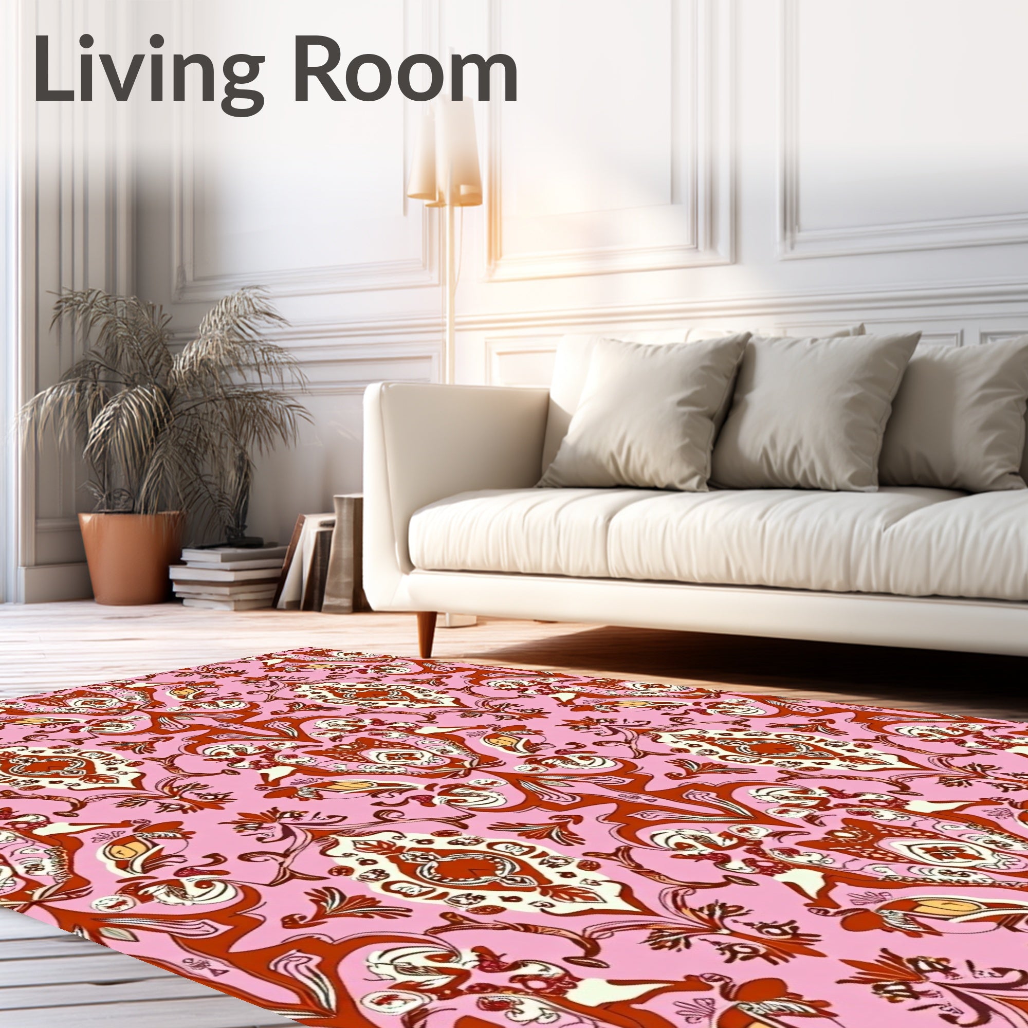 Ultra Soft Area Rug, Non Slip, Stain Resistant, Washable Area Rugs for Living Room, Bedroom, Boho Paisley Garden with Swirling Botanical Motifs(Pink) Overview: