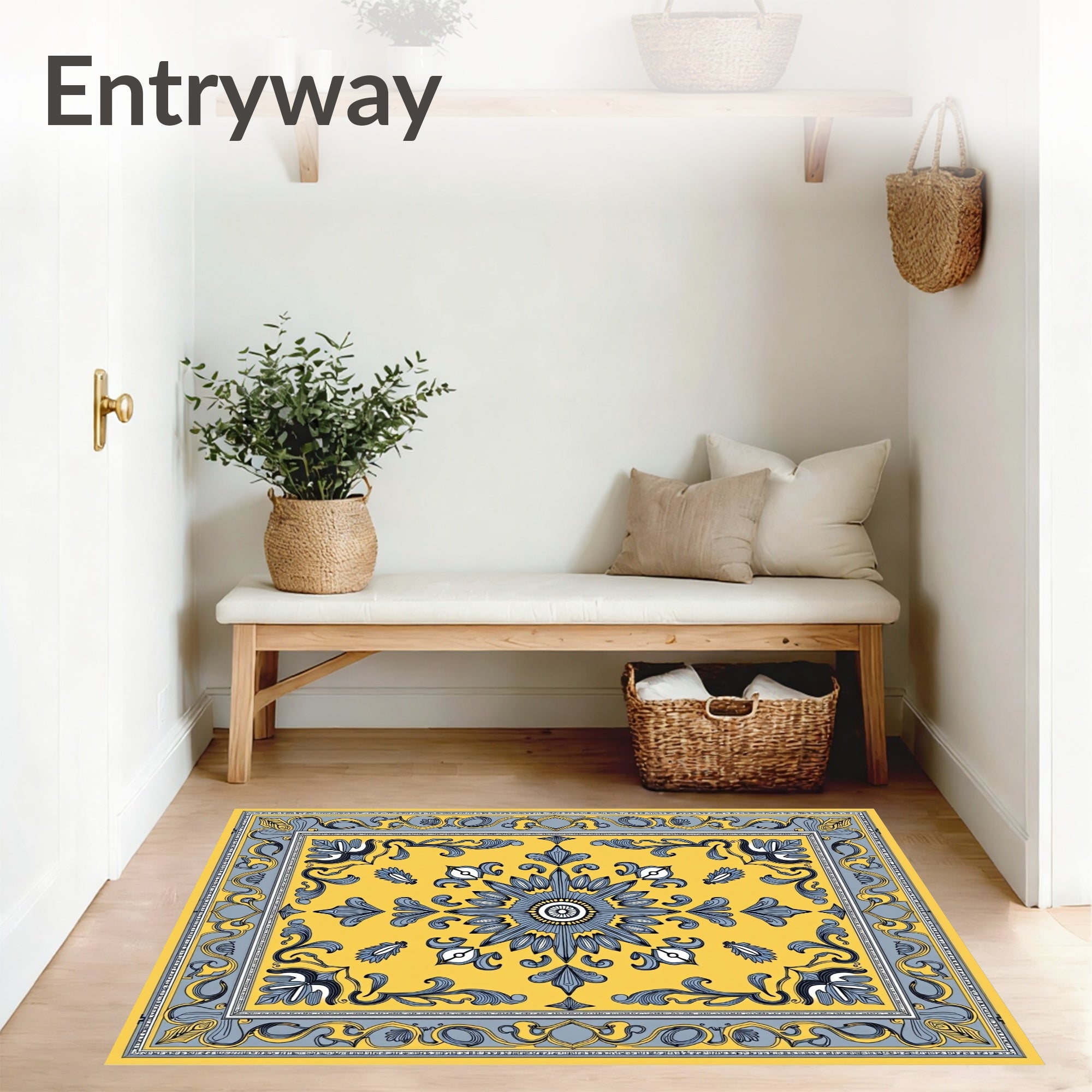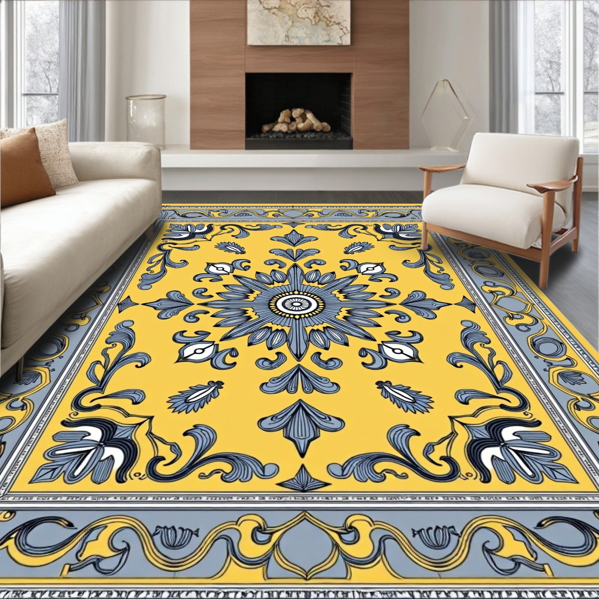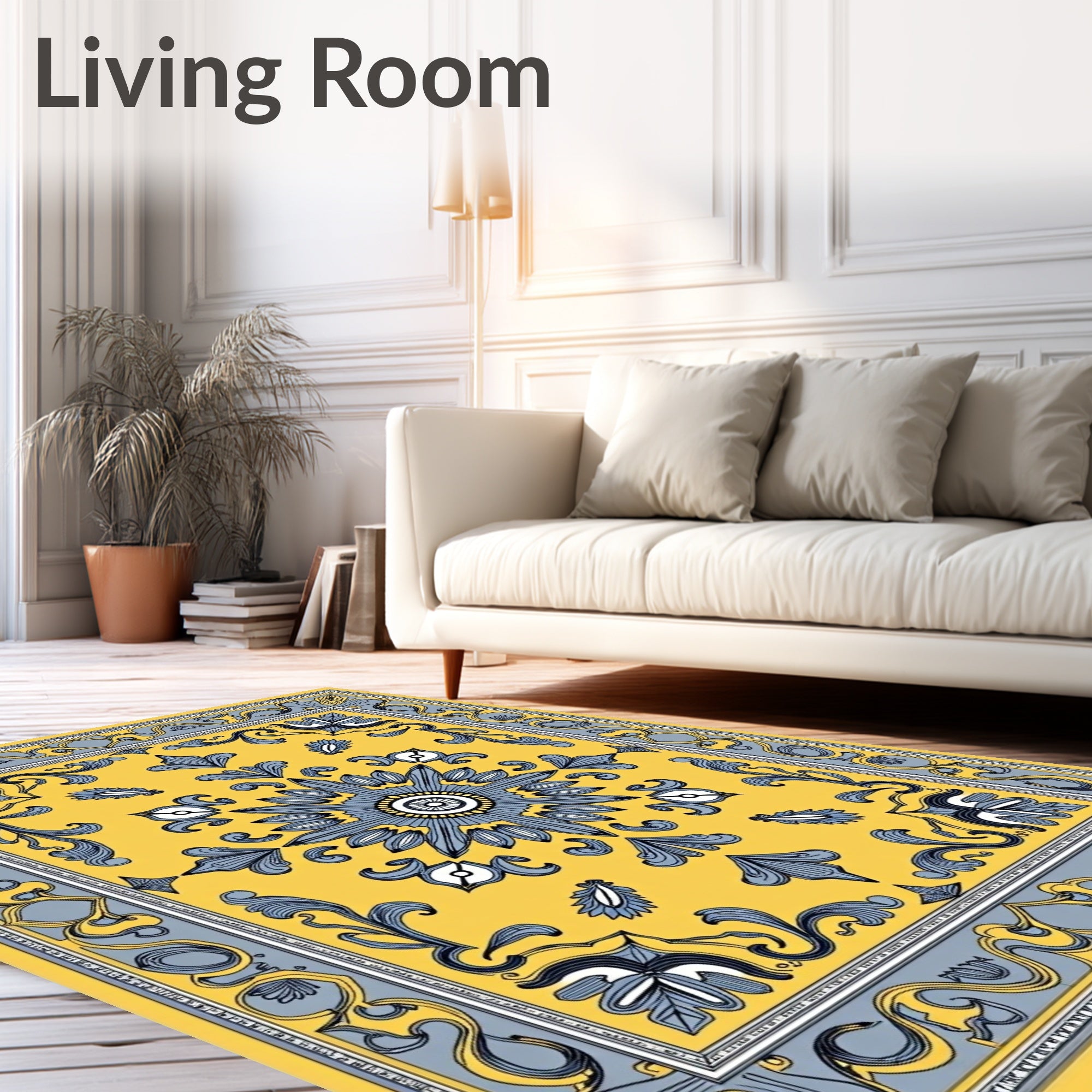 Ultra Soft Area Rug, Non Slip, Stain Resistant, Washable Area Rugs for Living Room, Bedroom, Boho Paisley Medallion with Eclectic Vintage Inspired Motifs(Yellow) Overview:
