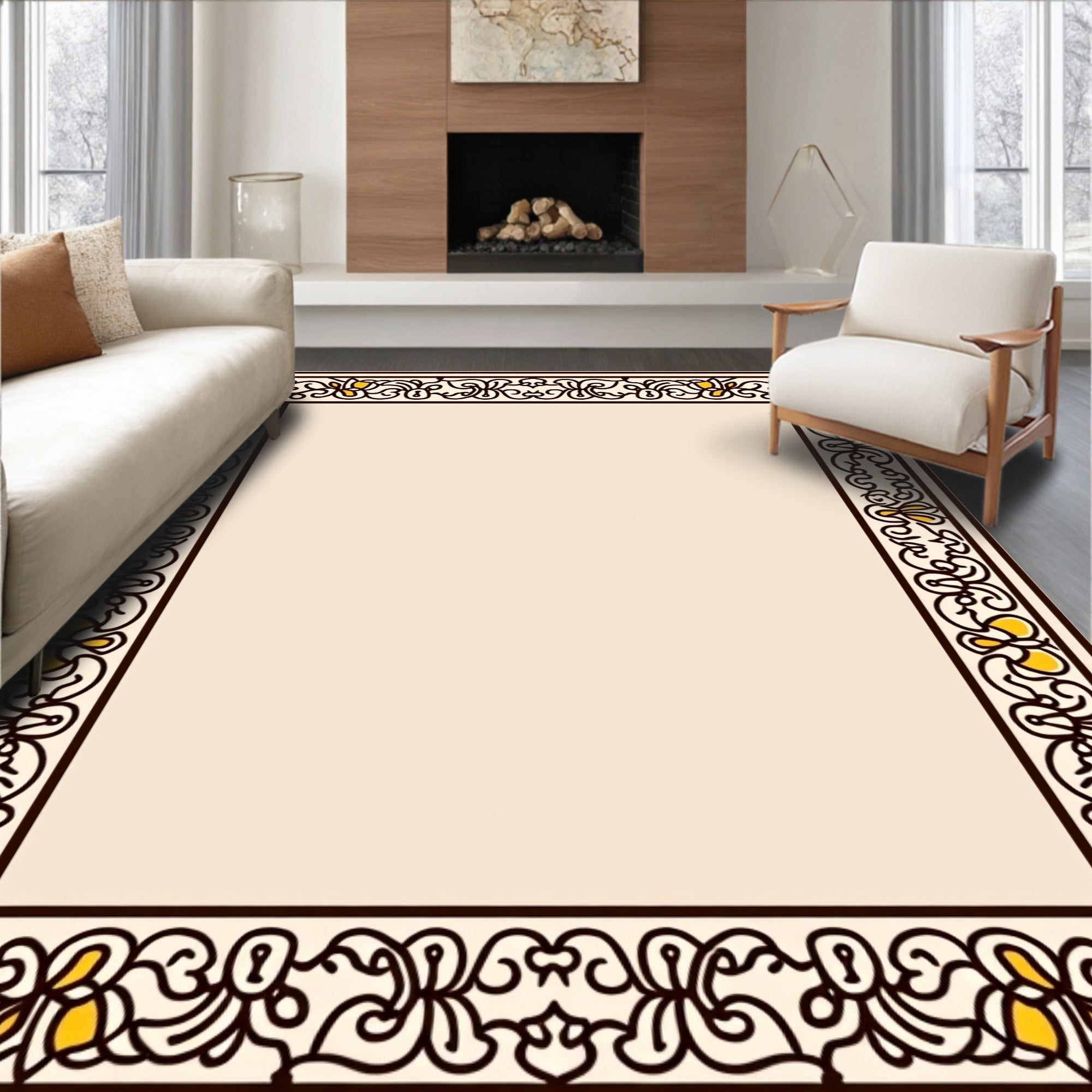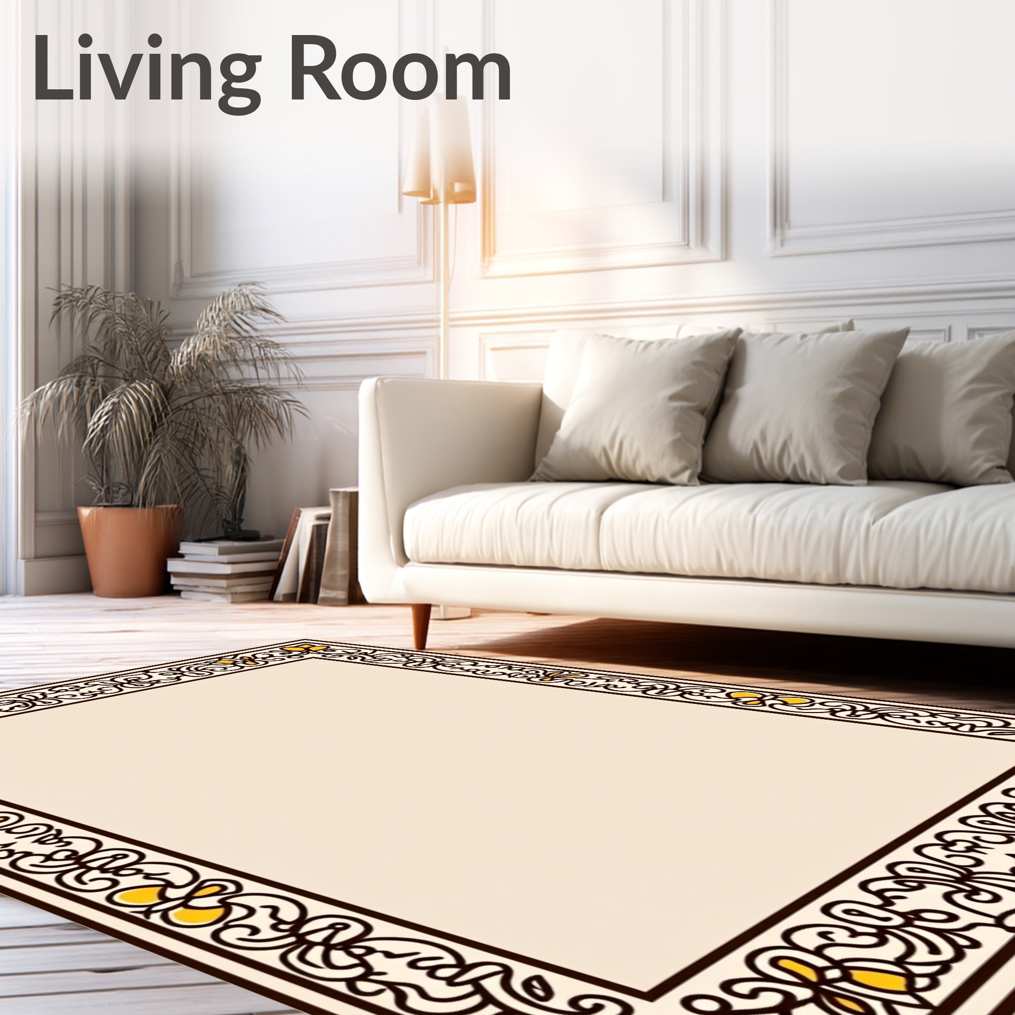 Ultra Soft Area Rug, Non Slip, Stain Resistant, Washable Area Rugs for Living Room, Bedroom, Boho Paisley Swirl Design with Ornamental Border Frame(Ivory) Overview: