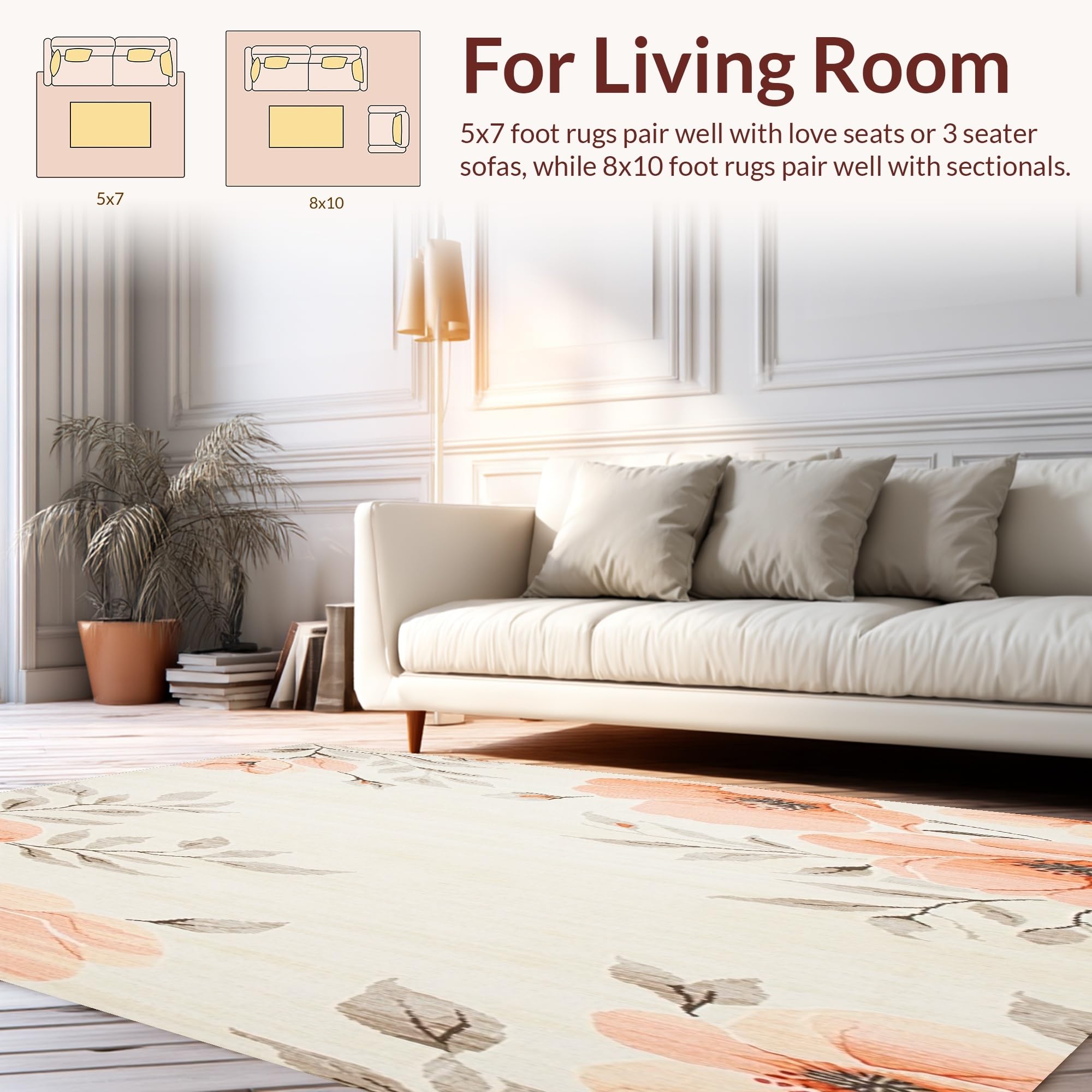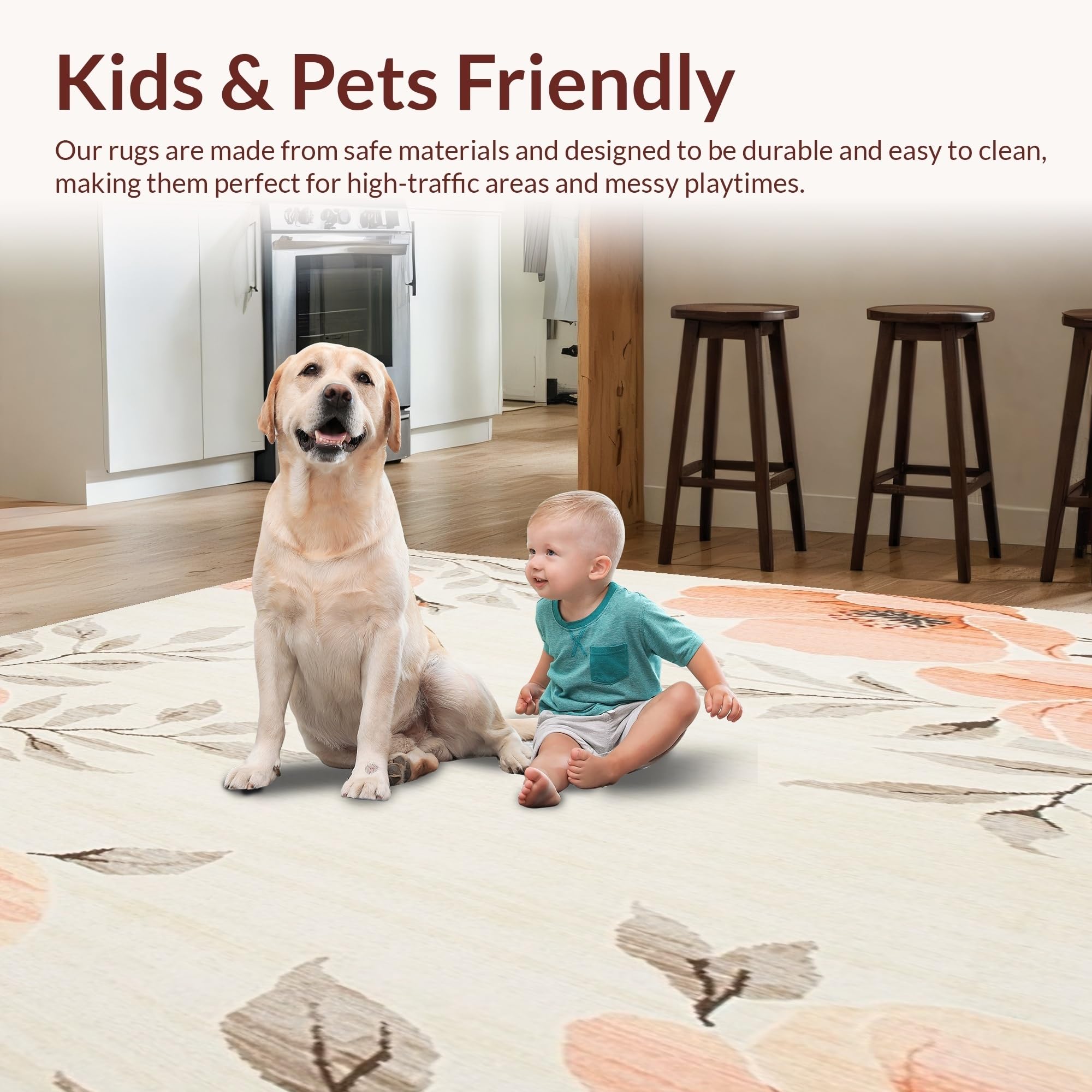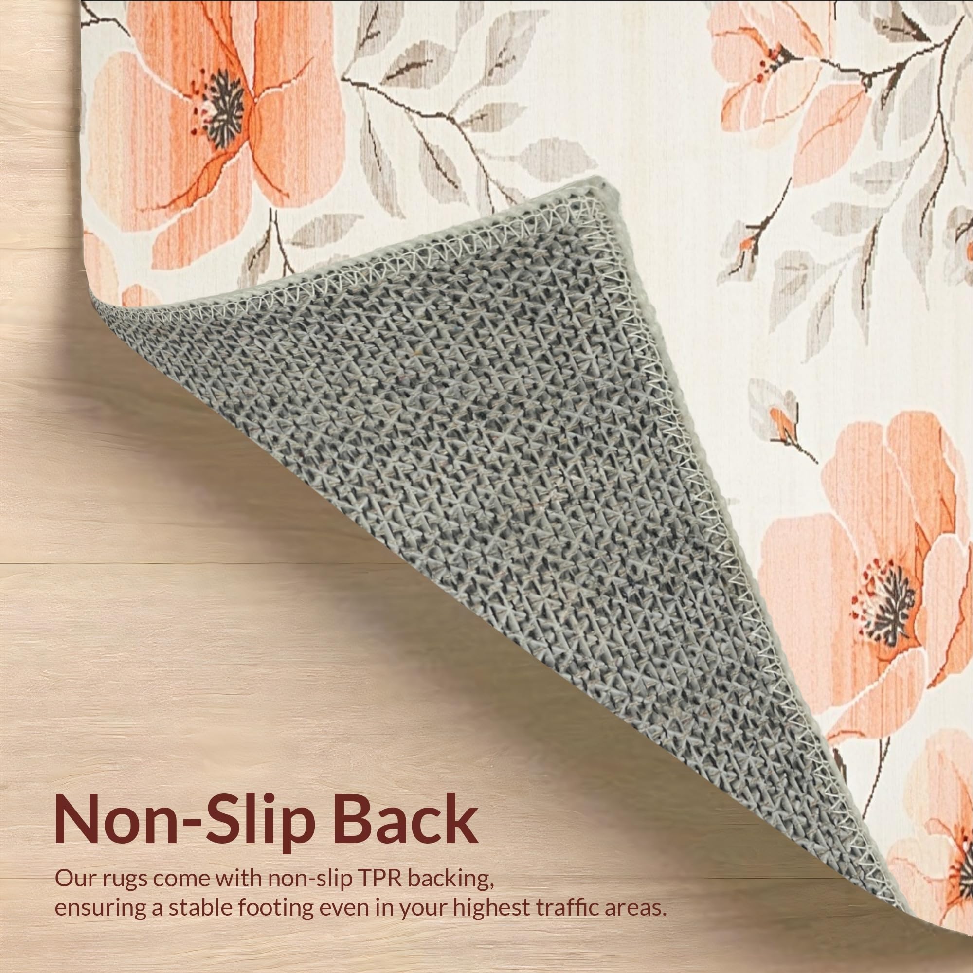 Ultra Soft Area Rug, Non Slip, Stain Resistant, Washable Area Rugs for Living Room, Bedroom, Boho Petal Non Slip Beige Flower Entryway(Beige) Overview: