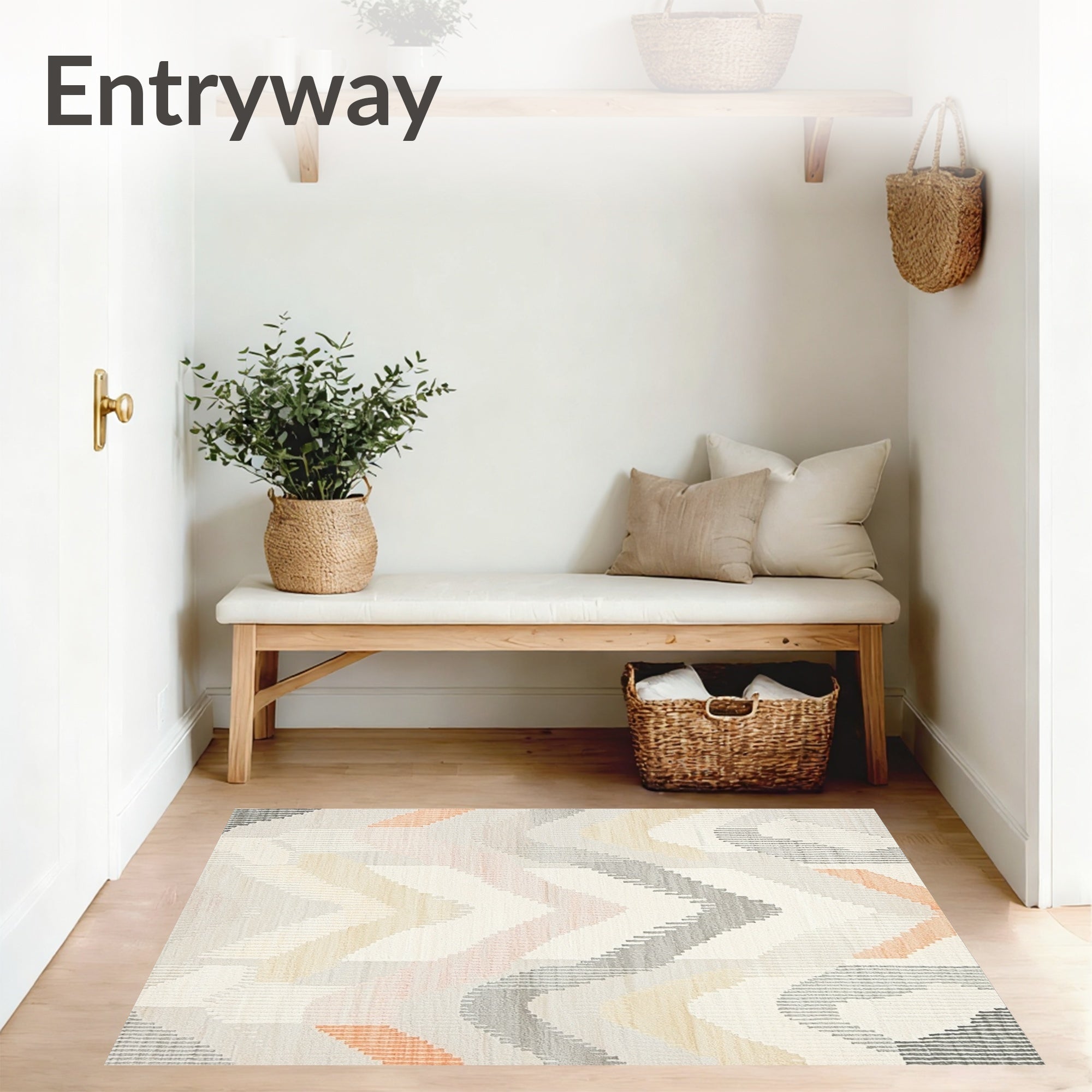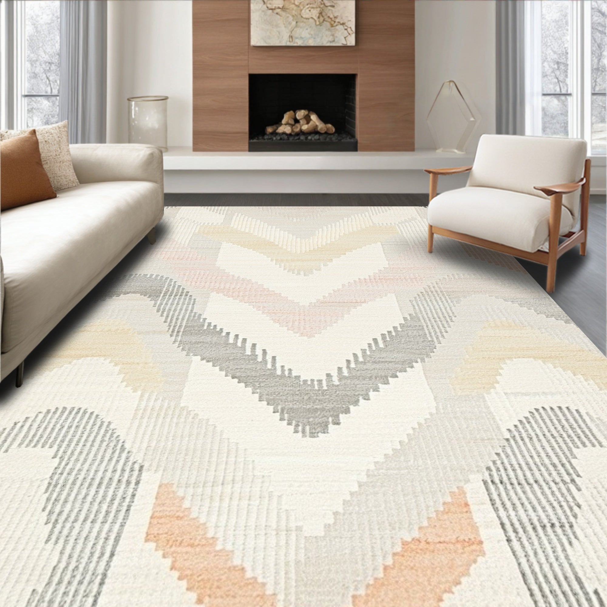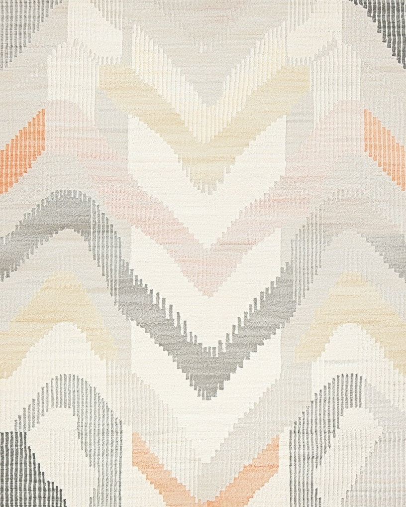 Ultra Soft Area Rug, Non Slip, Stain Resistant, Washable Area Rugs for Living Room, Bedroom, Boho Retreat Runner Showcasing Freeform Chevron Waves and Contrasts(Beige) Overview: