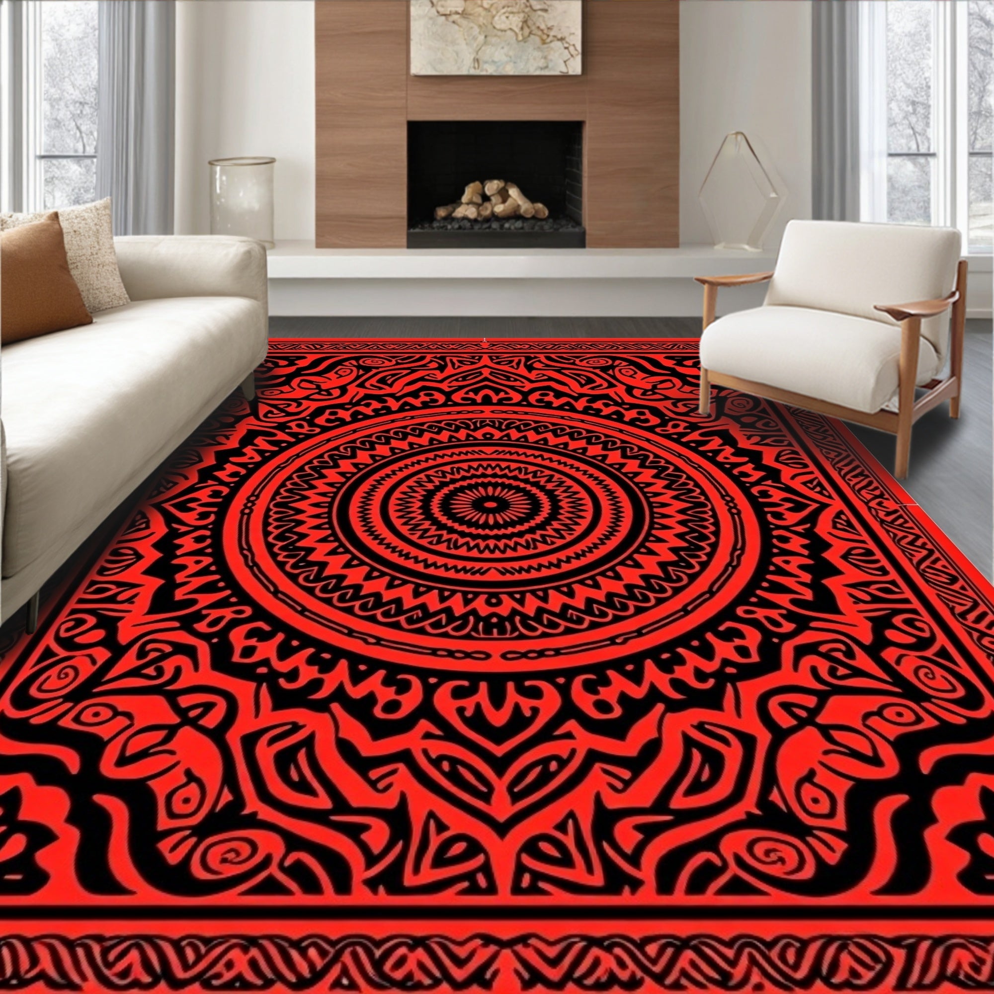 Ultra Soft Area Rug, Non Slip, Stain Resistant, Washable Area Rugs for Living Room, Bedroom, Boho Shag with Intricate Medallion Design(Red) Overview: