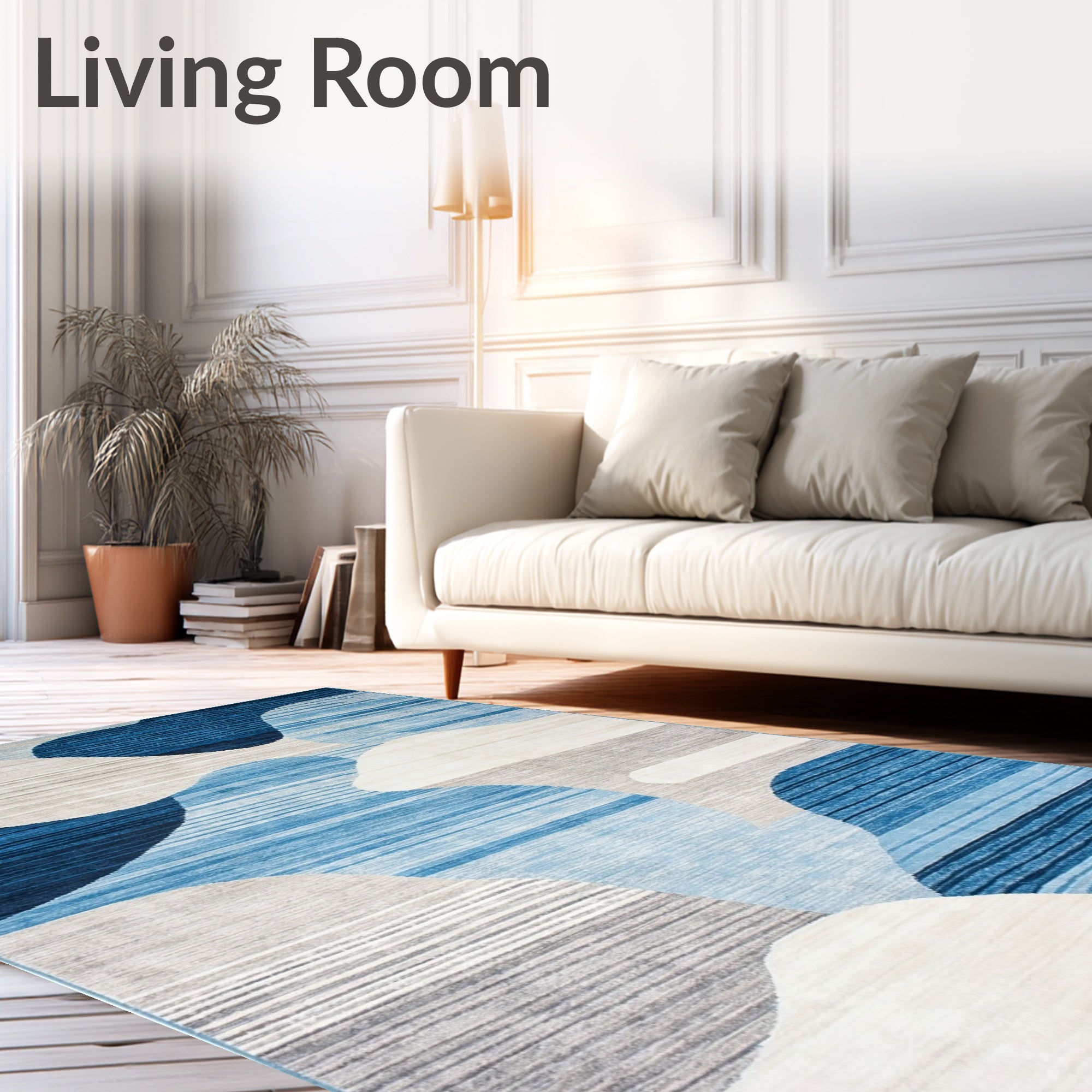 Ultra Soft Area Rug, Non Slip, Stain Resistant, Washable Area Rugs for Living Room, Bedroom, Boho Style Runner Hand Woven Design Area Blue Beige Tones(Blue) Overview: