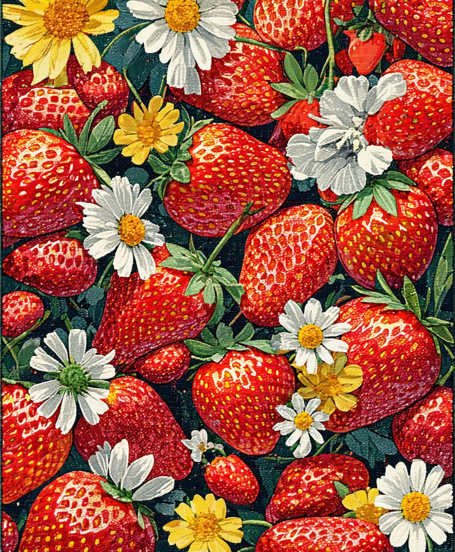 Boho Summer Fruits Mat Strawberries and Floral(Red)