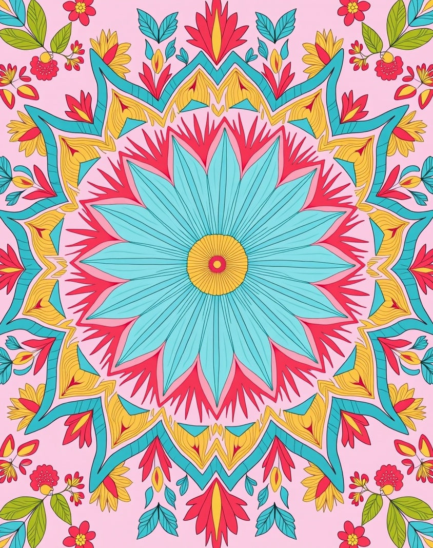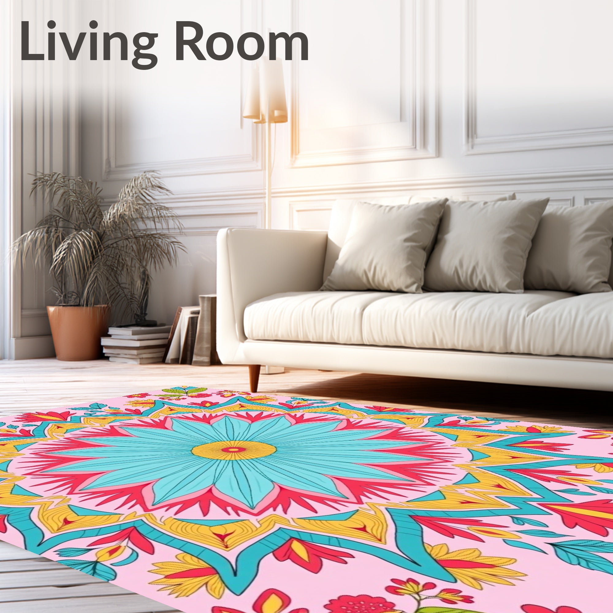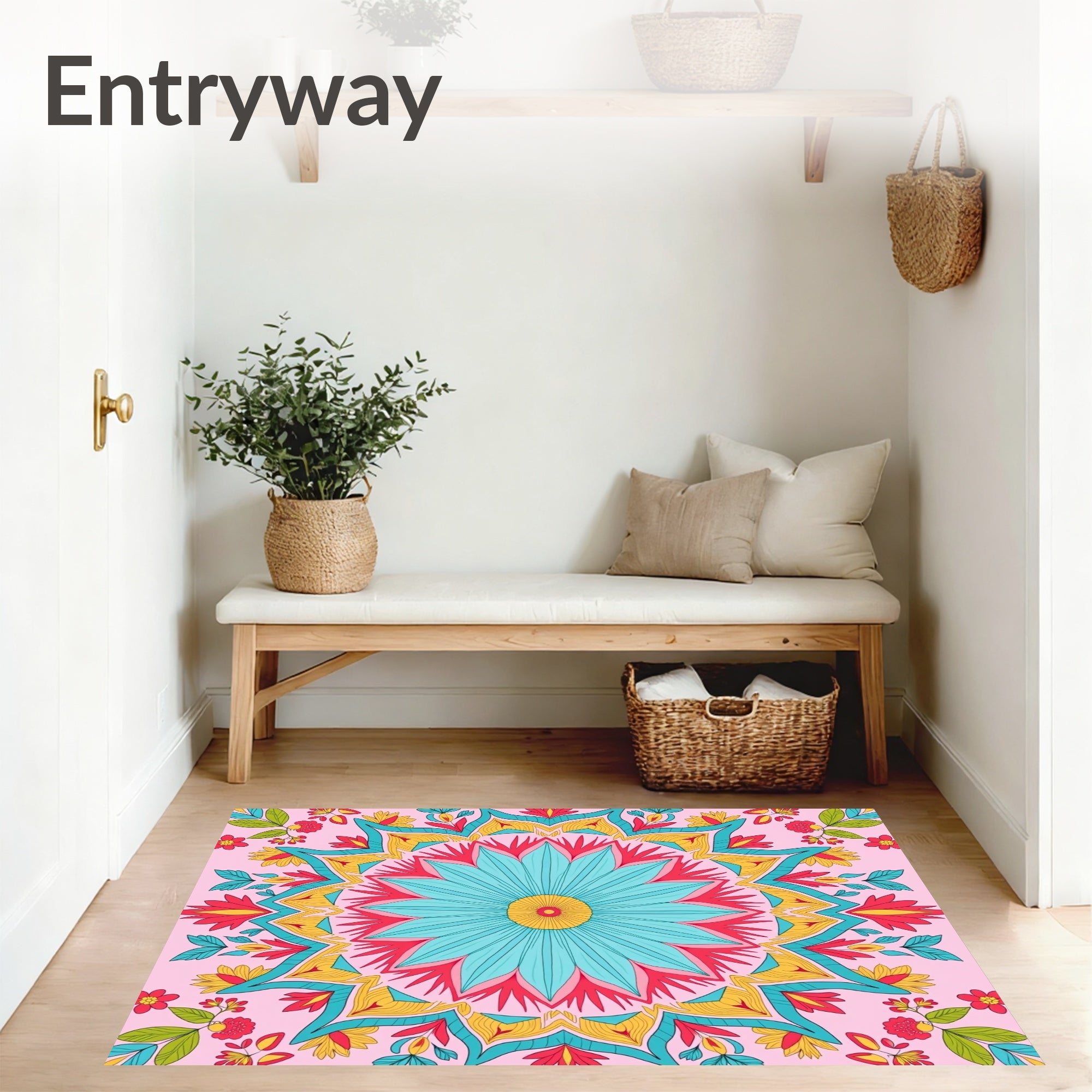 Ultra Soft Area Rug, Non Slip, Stain Resistant, Washable Area Rugs for Living Room, Bedroom, Boho Sunburst Adorned with Whimsical Wildflowers(Pink) Overview: