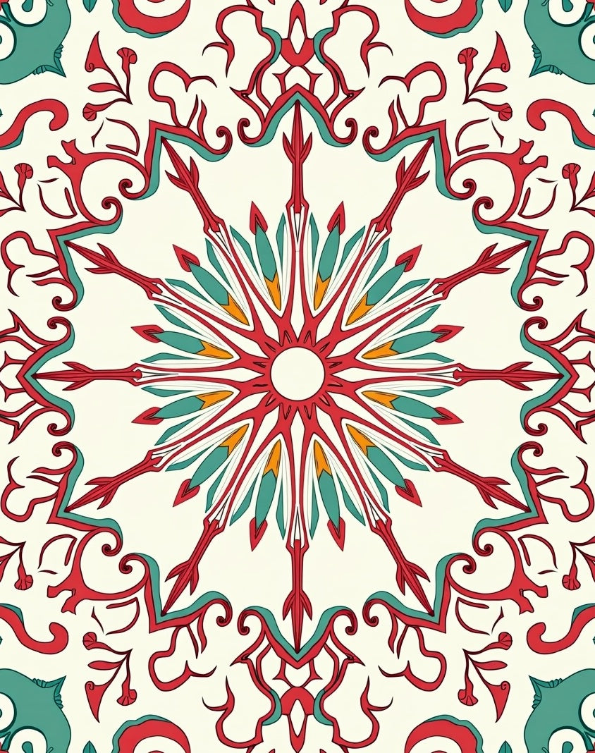 Boho Sunburst Design with Twisting Leaf Motifs(Red)