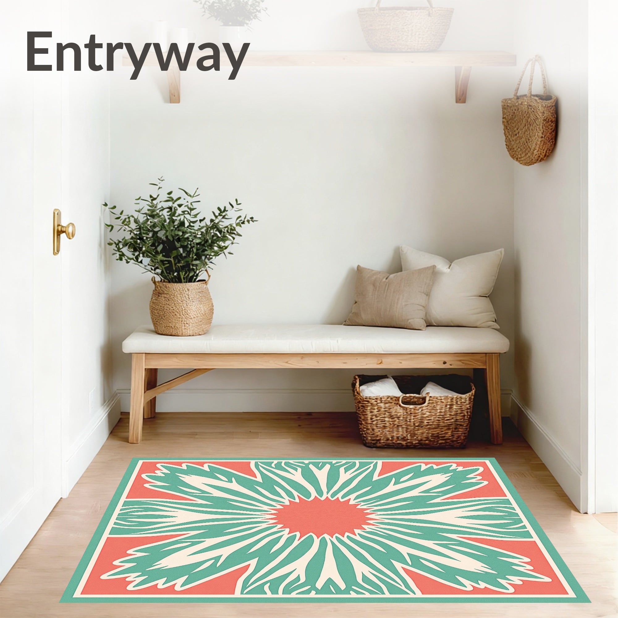 Ultra Soft Area Rug, Non Slip, Stain Resistant, Washable Area Rugs for Living Room, Bedroom, Boho Sunburst Mosaic with Modern Pastel Accents(Red) Overview:
