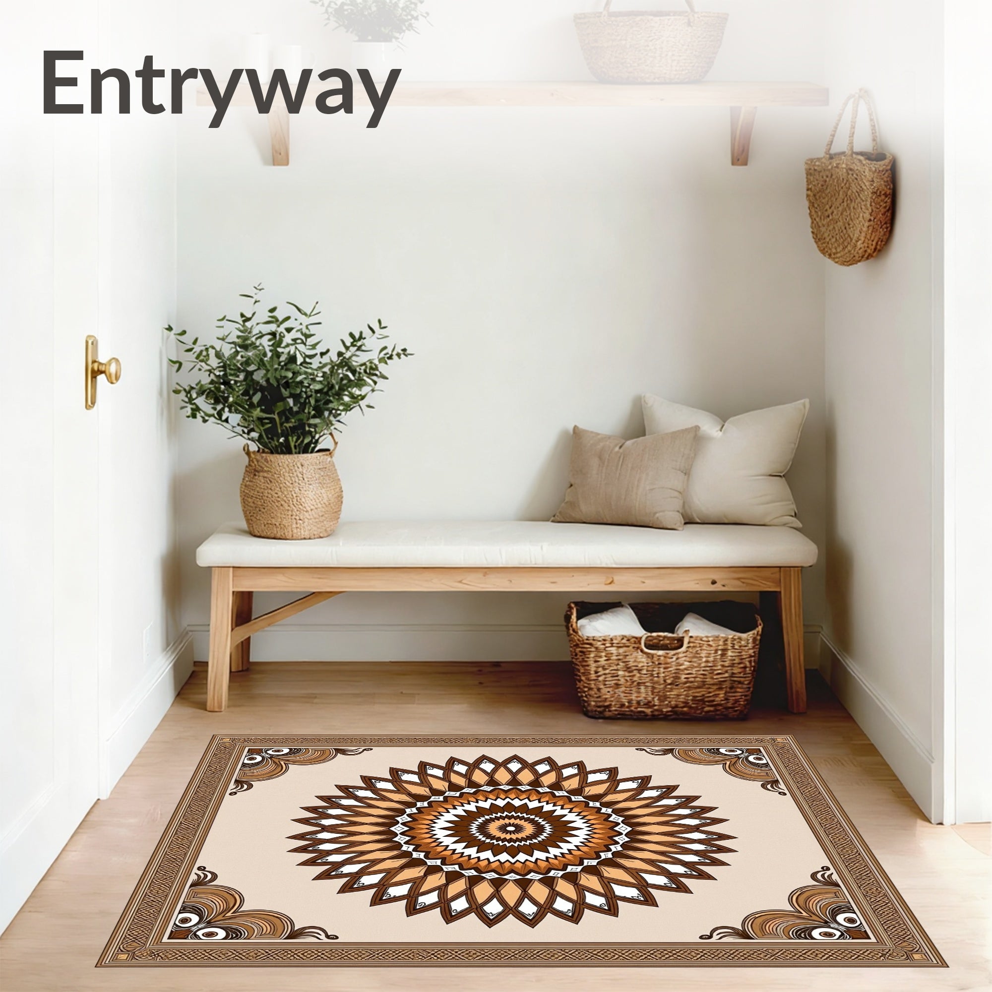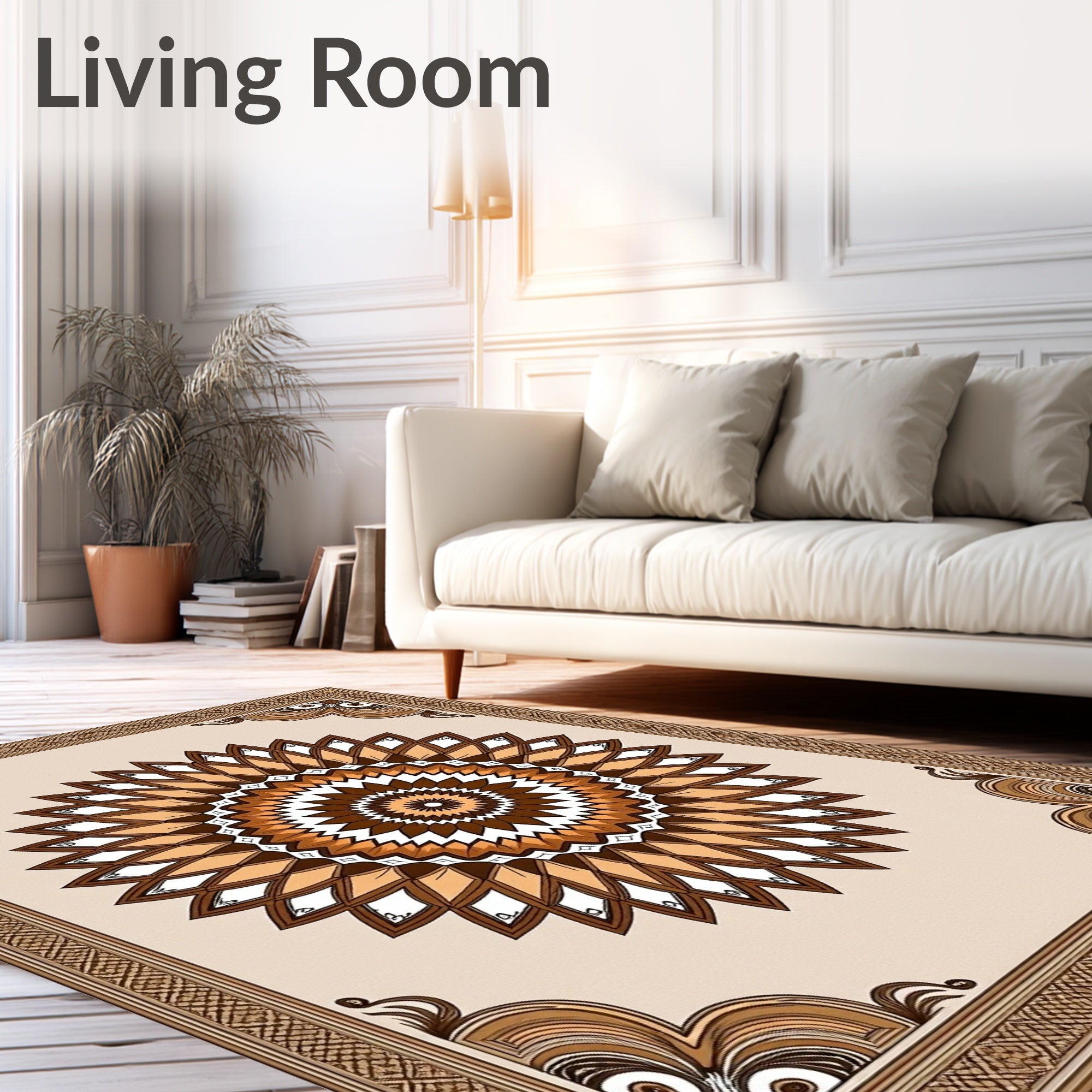 Ultra Soft Area Rug, Non Slip, Stain Resistant, Washable Area Rugs for Living Room, Bedroom, Boho Sunburst Traditional Floor Covering(Beige) Overview: