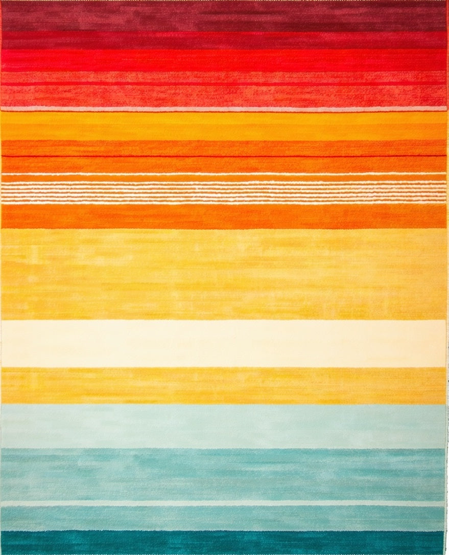 Boho Sunrise Stripe Rug With Easy Clean Surface For Versatile Decorating(Red)