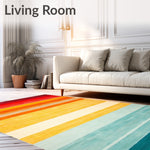 Ultra Soft Area Rug, Non Slip, Stain Resistant, Washable Area Rugs for Living Room, Bedroom, Boho Sunrise Stripe Rug With Easy Clean Surface For Versatile Decorating(Red) Overview: