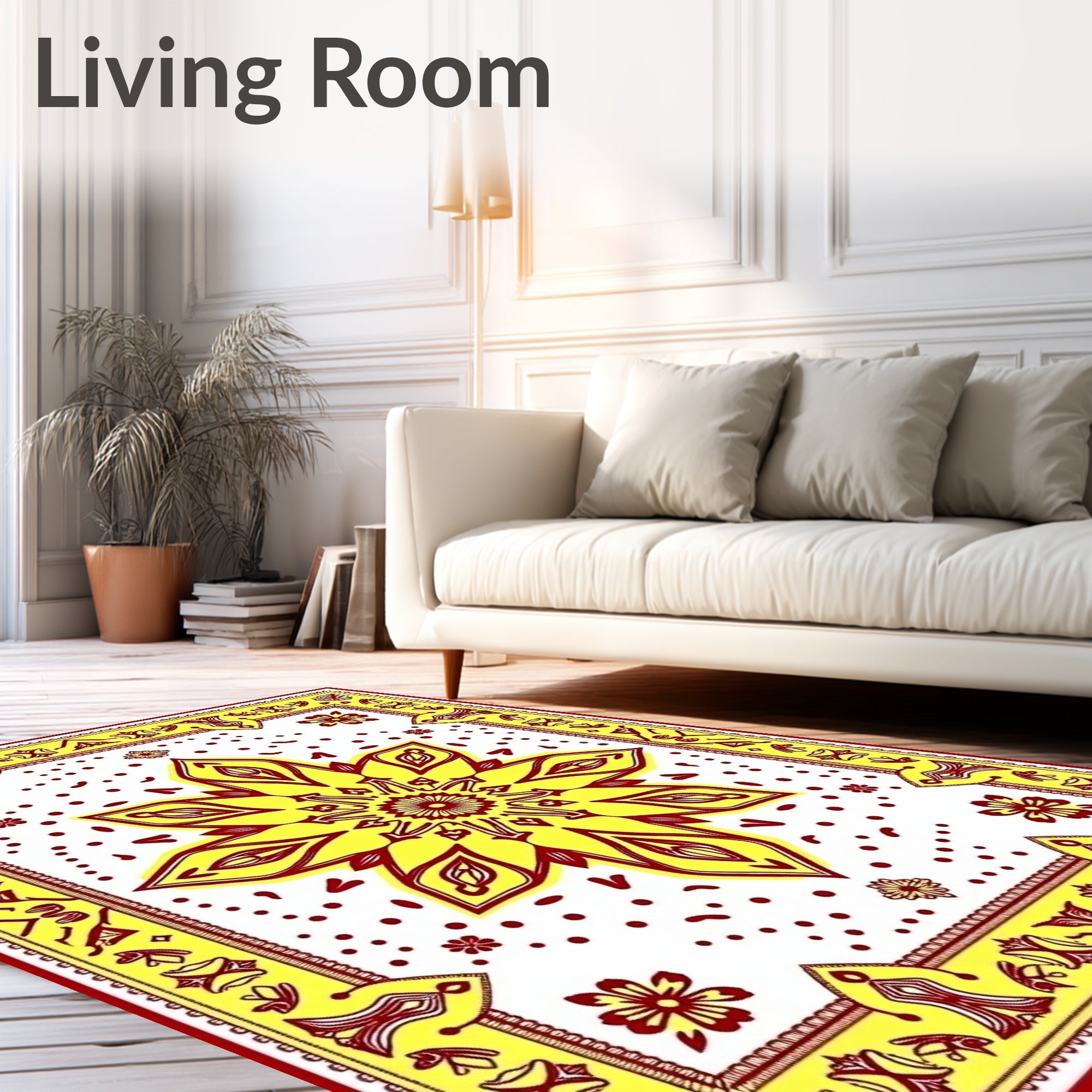Ultra Soft Area Rug, Non Slip, Stain Resistant, Washable Area Rugs for Living Room, Bedroom, Boho Sunshine Jewel(Yellow) Overview:
